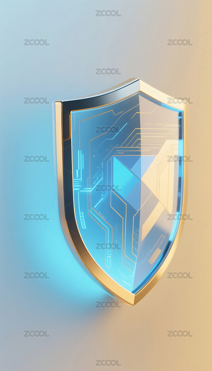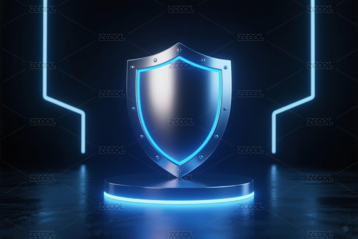 3D蓝色安全盾牌科技感背景互联网网络安全