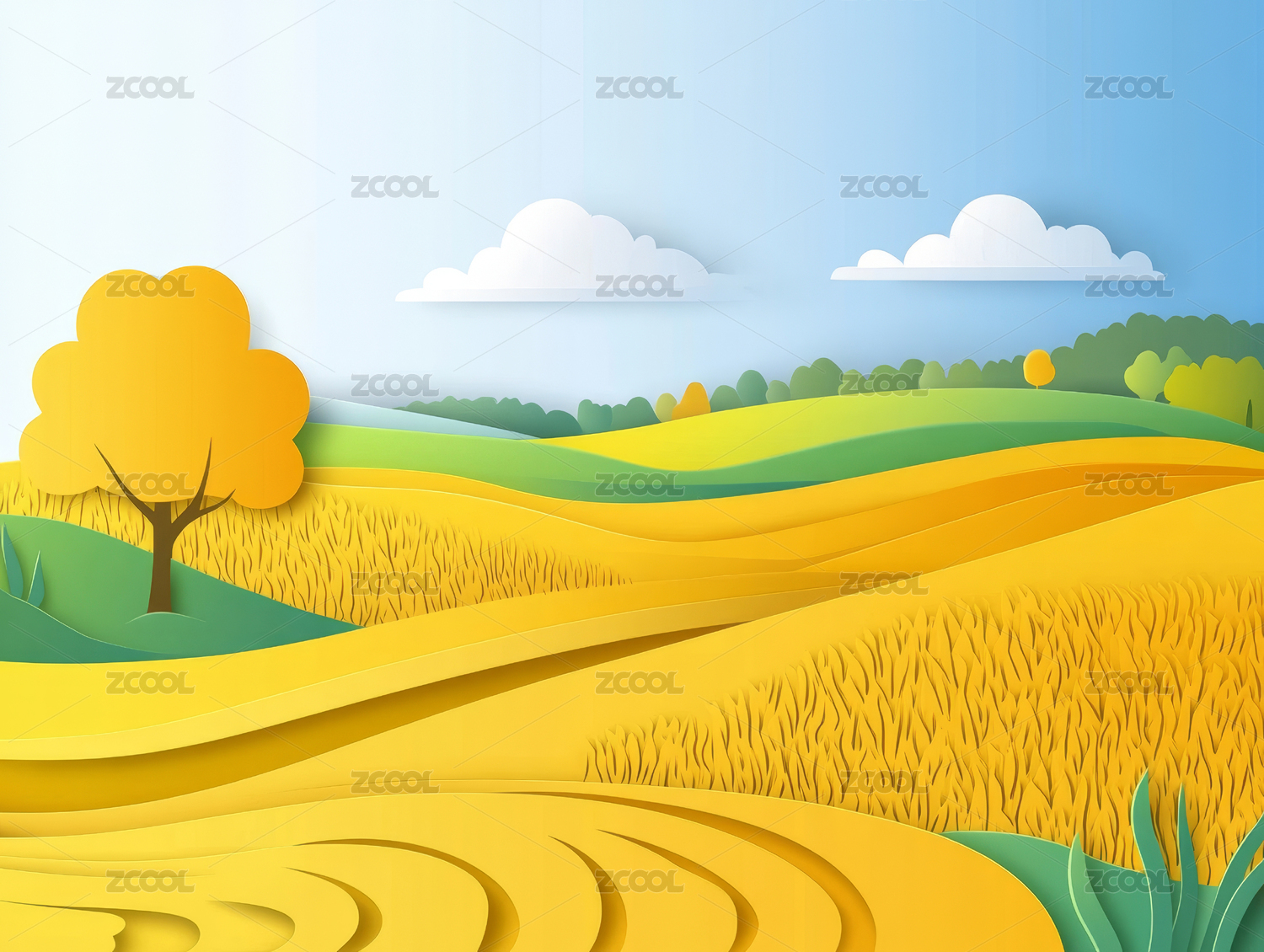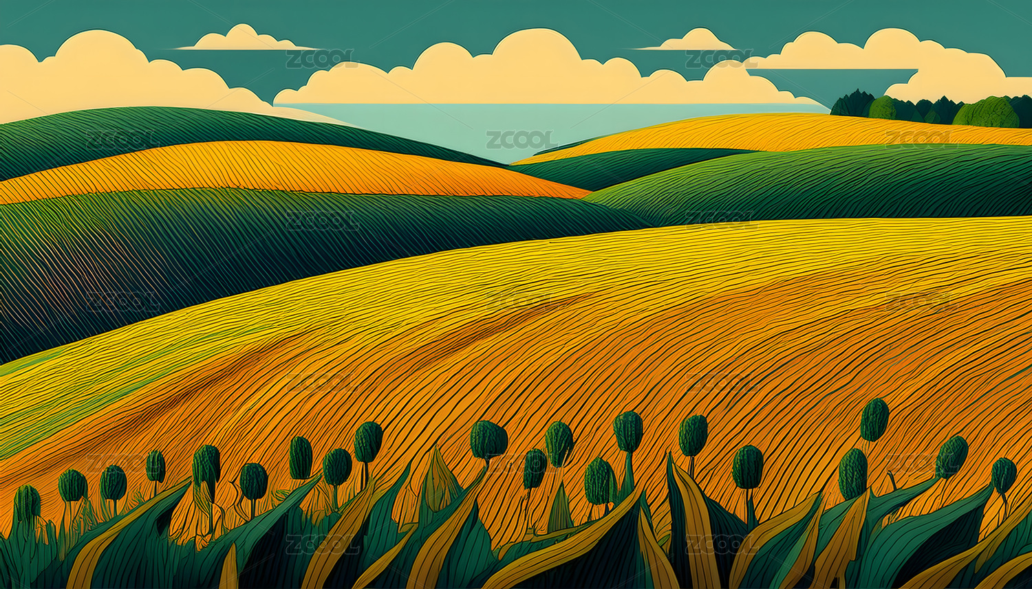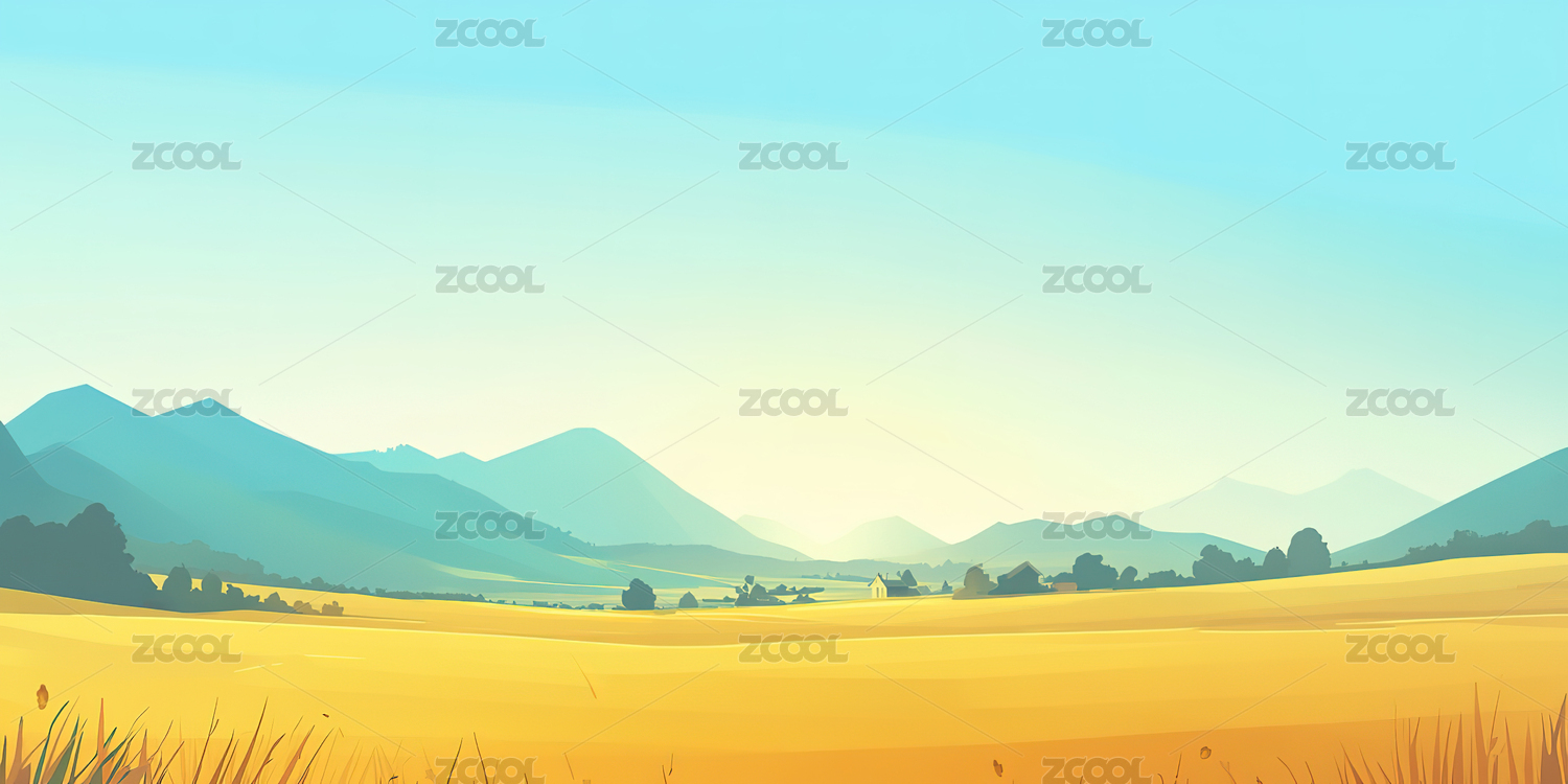 田园,风光,插画,背景,自然,风景,田野,蓝天,白云,山脉