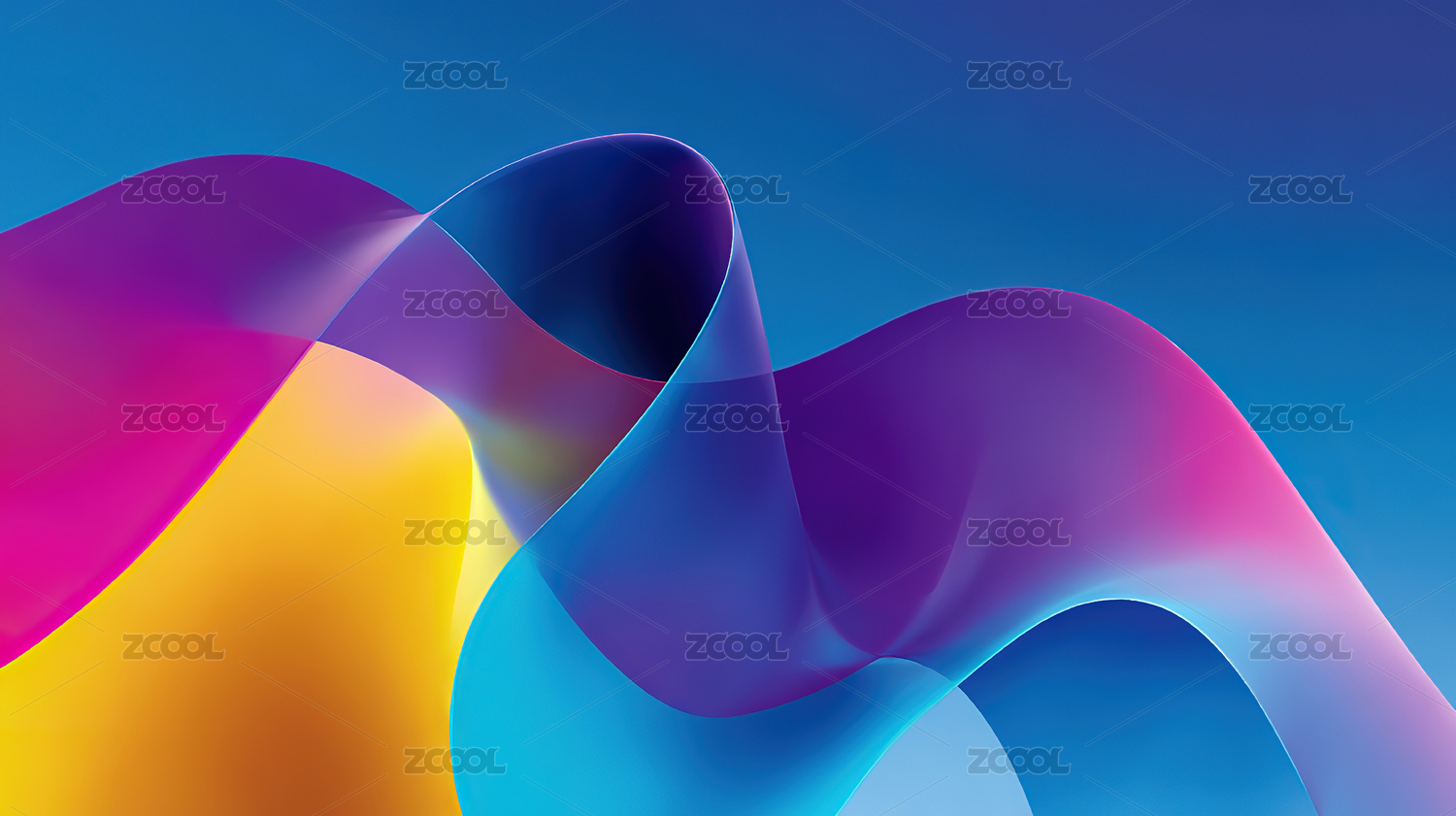 渐变蓝粉色波浪线条