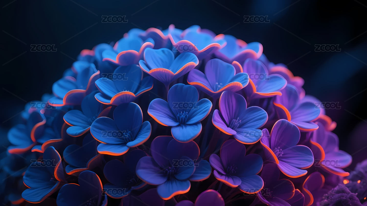 蓝紫花朵橙色荧光