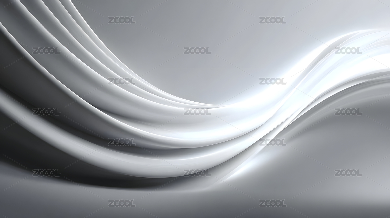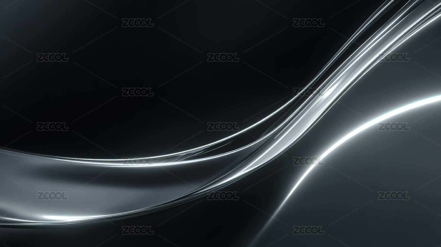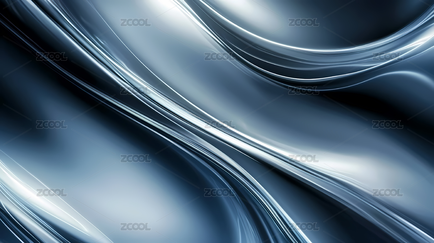 流畅银色曲线展现金属质感抽象艺术