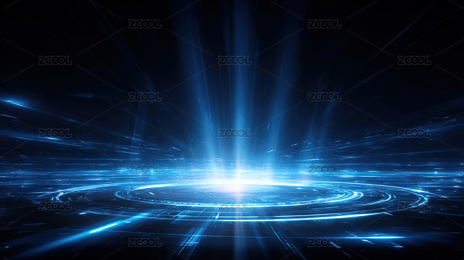蓝色科技光环与光束的未来感场景