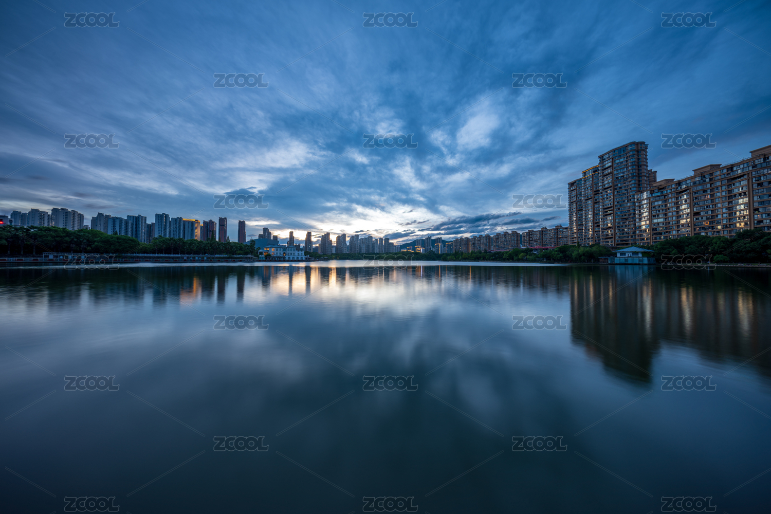 湖畔,高楼,建筑,倒影,湖水,蓝天,白云,绿树,城市景观,住宅