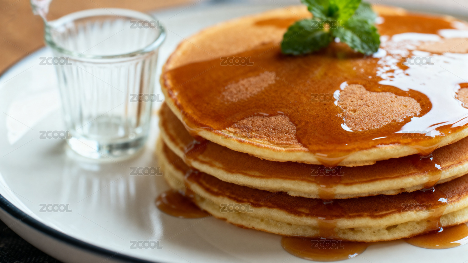 金黄松饼淋糖浆配薄荷