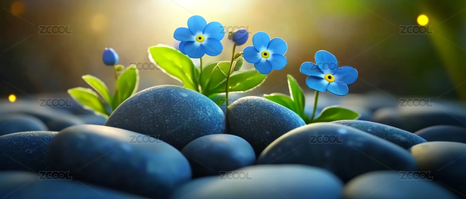 鹅卵石绿植清新风装饰场景