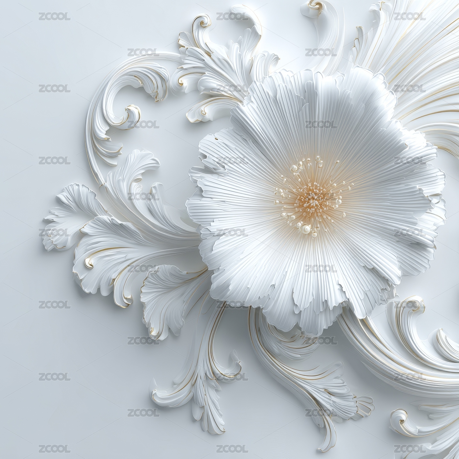 精致白色花卉雕刻艺术