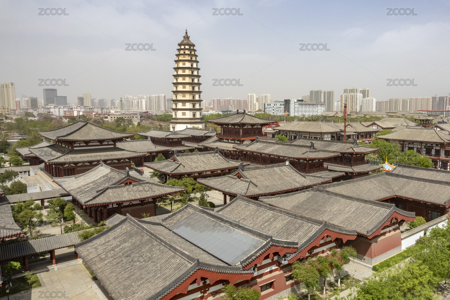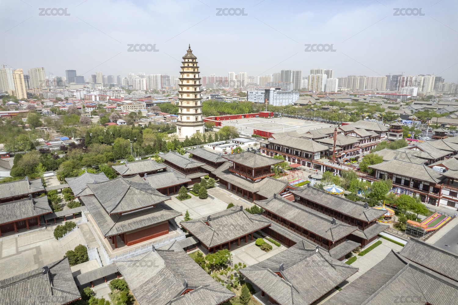 河北省,保定市,定州市,开元寺塔,定州塔,航拍,古塔,天际线,现代建筑,城市景观