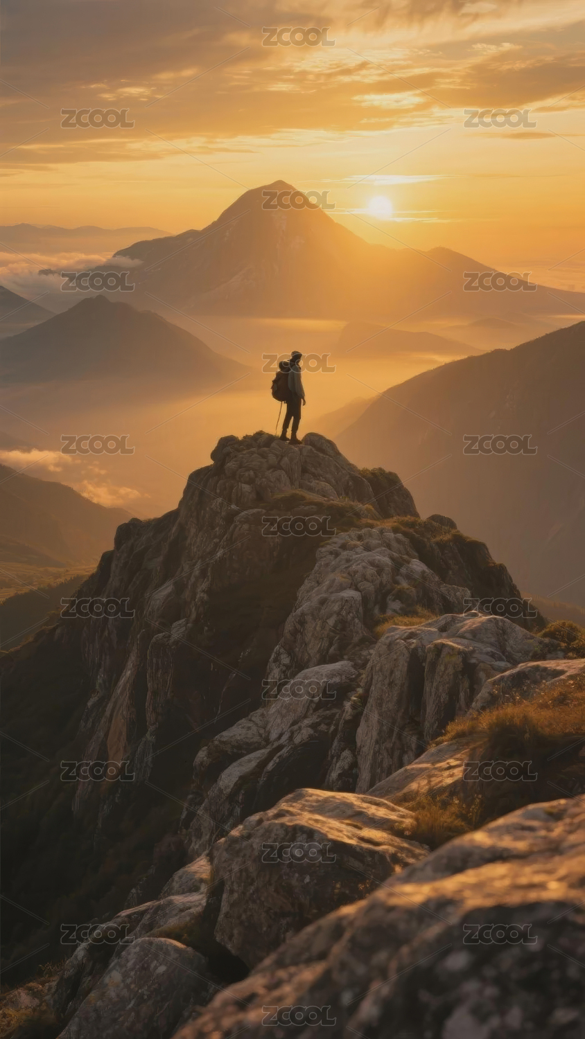 山顶,独行者,日出,山脉,云雾,风景,自然,摄影,画面,壮美