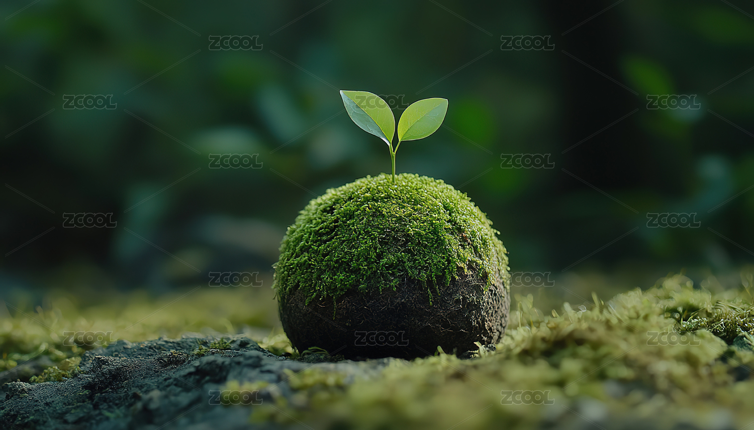苔藓石块清新自然景观