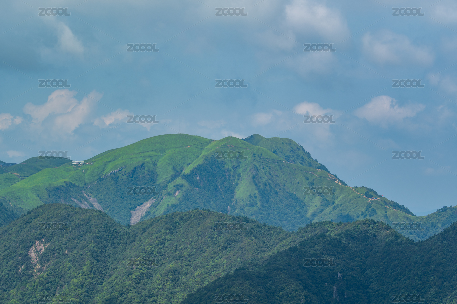 江西武功山羊狮慕景区宁静的翠绿山峦