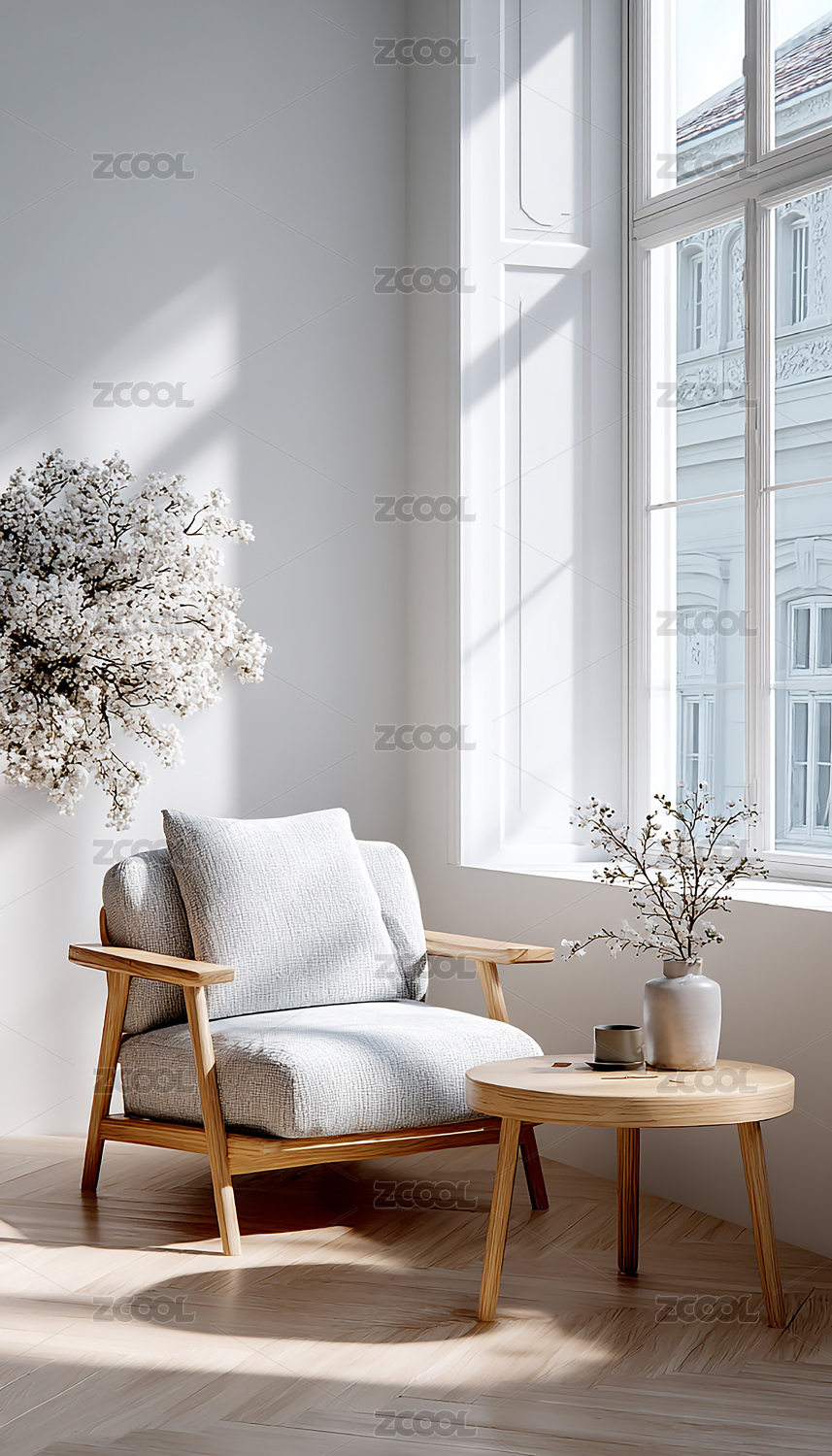 现代,室内,设计,明亮,阳光,窗户,光影,座椅,茶桌,盆栽
