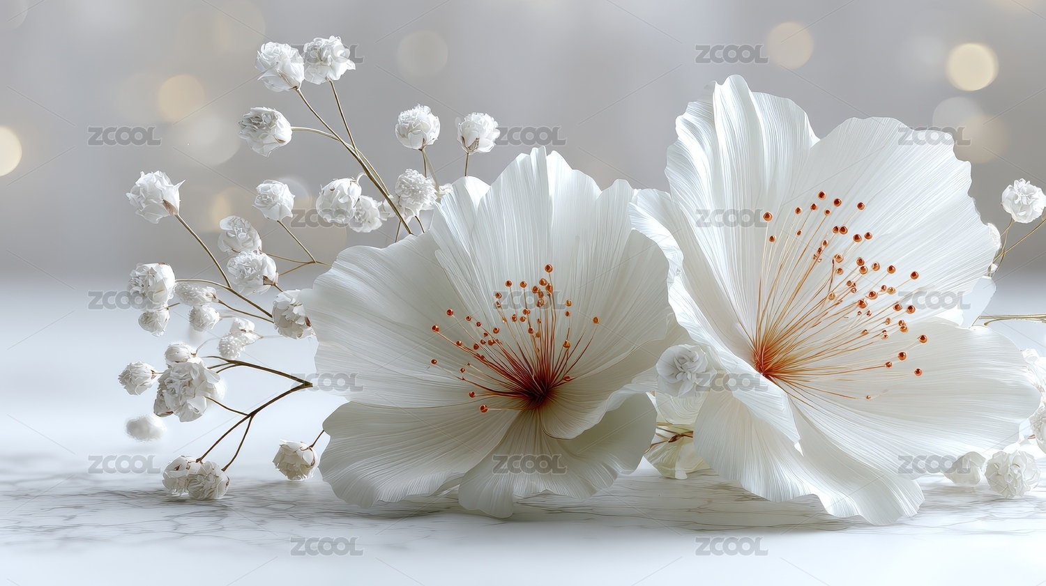 纯净,优雅,洁白,精致,柔和,特写,花卉,背景光,花瓣,花艺