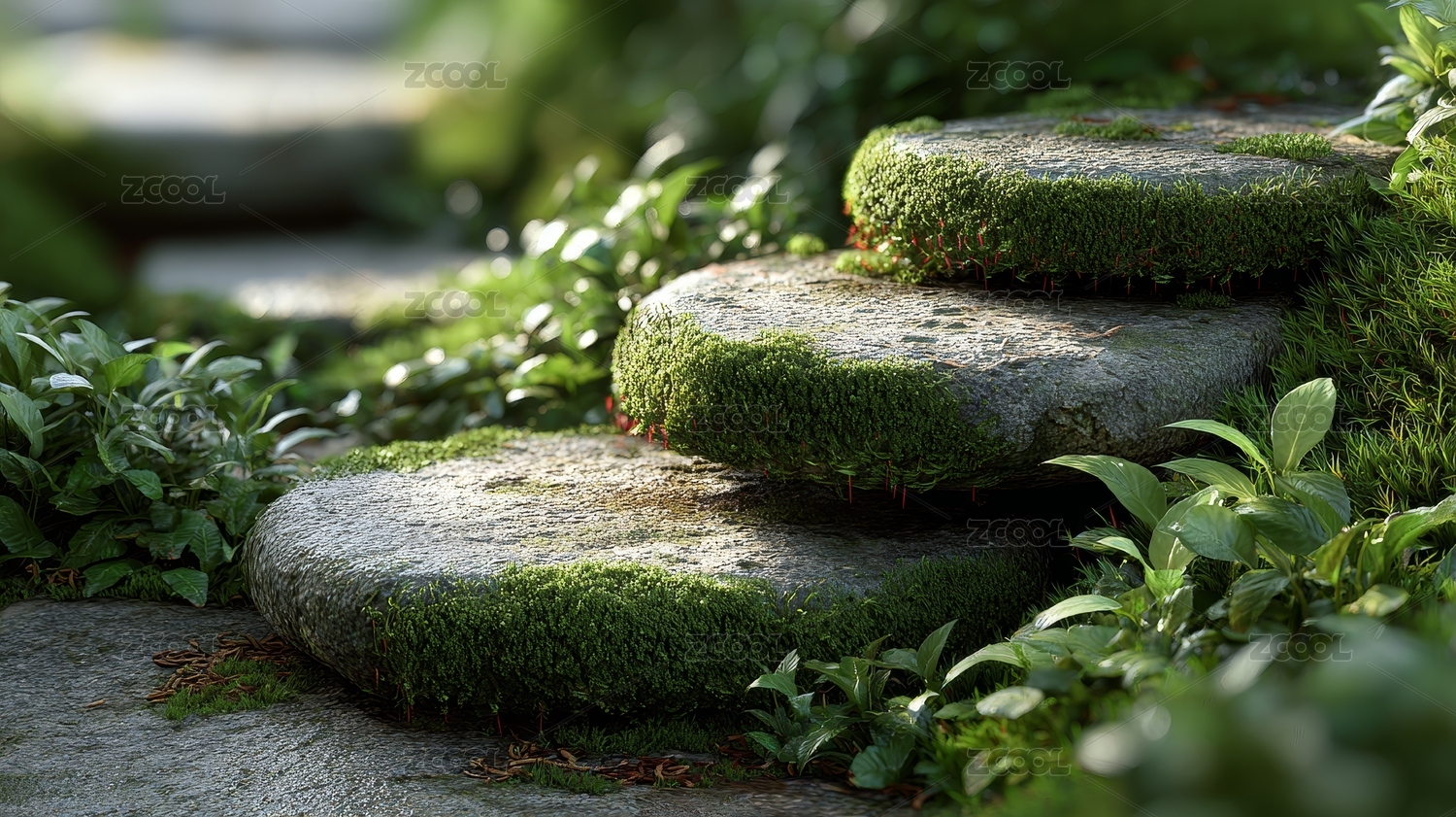 苔藓石阶的自然诗意