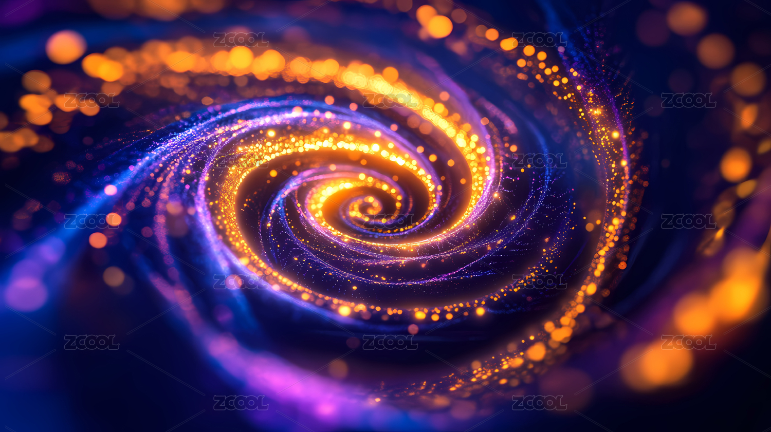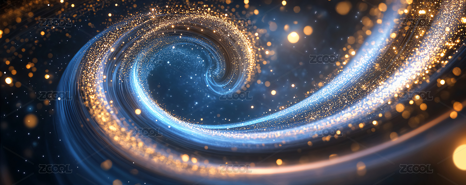 蓝橙螺旋线条金色光点