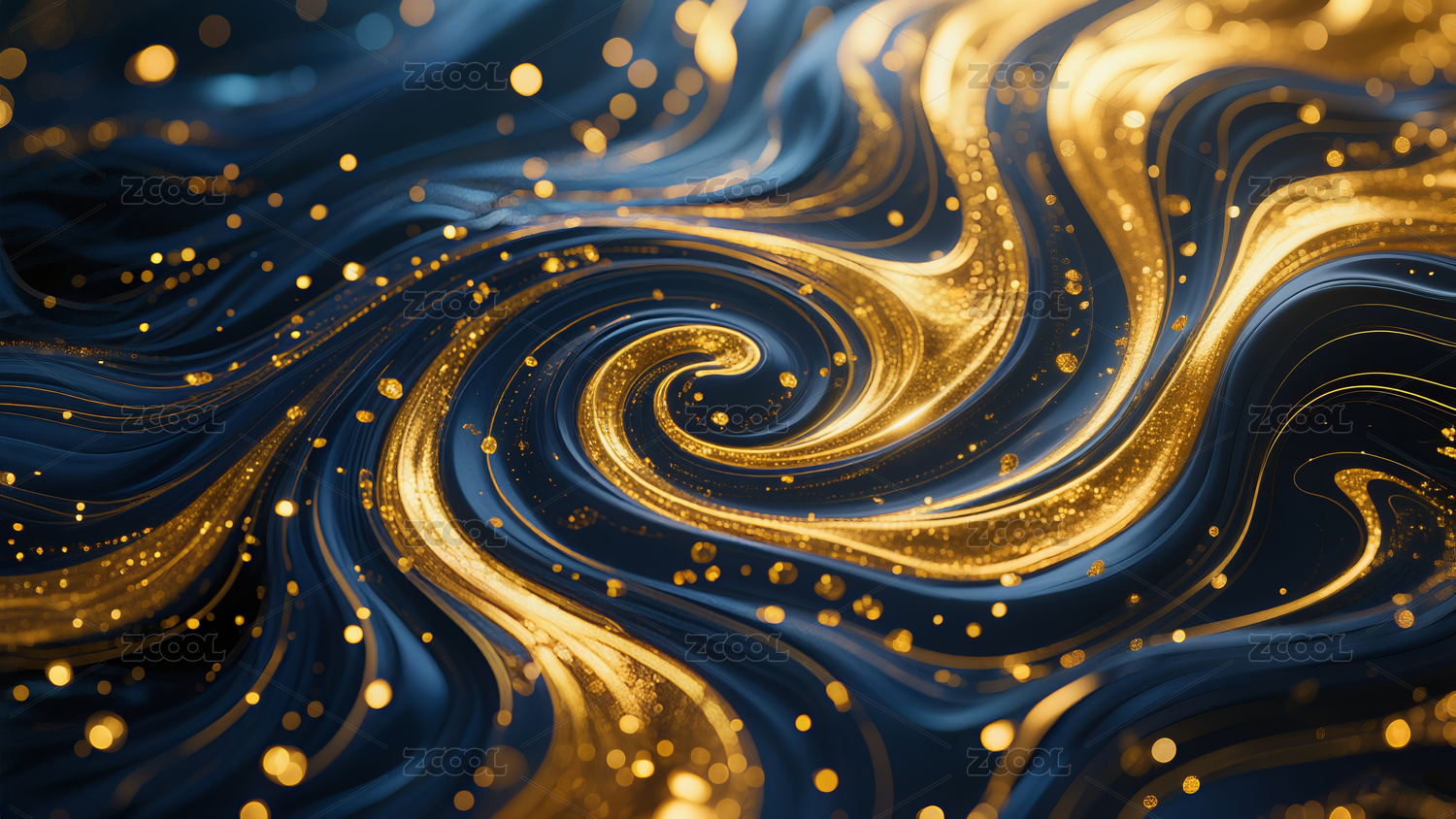 深蓝金色流体抽象艺术背景