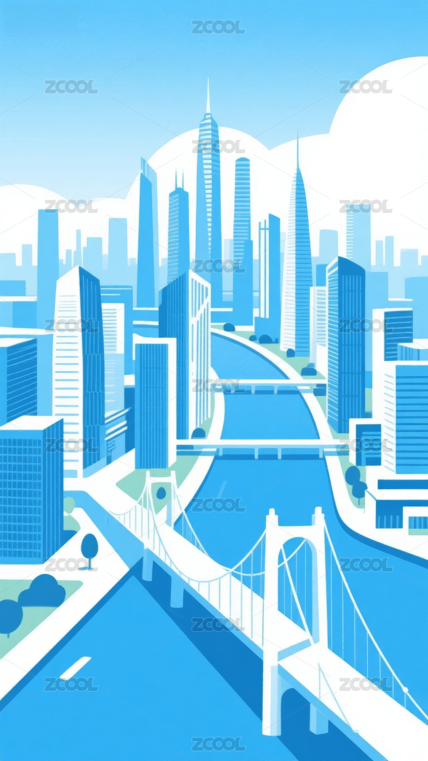 中国广东佛山市城市旅游景观矢量插画蓝色