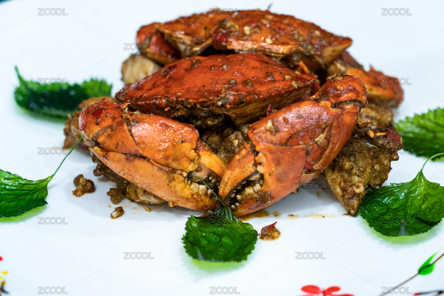 螃蟹,松叶蟹,避风塘炒蟹,避风塘,炒蟹,炒松叶蟹,白盘,白底,新鲜,美味