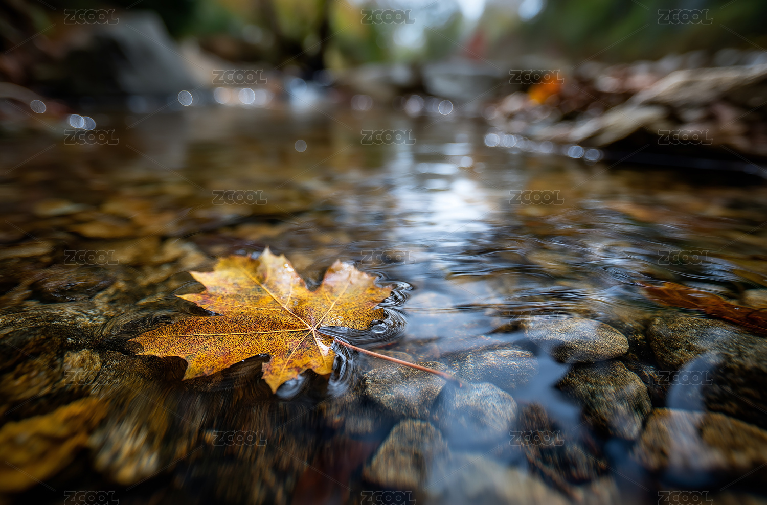 溪流,秋叶,漂浮,石子,自然,场景,秋季,落叶,水景,生态