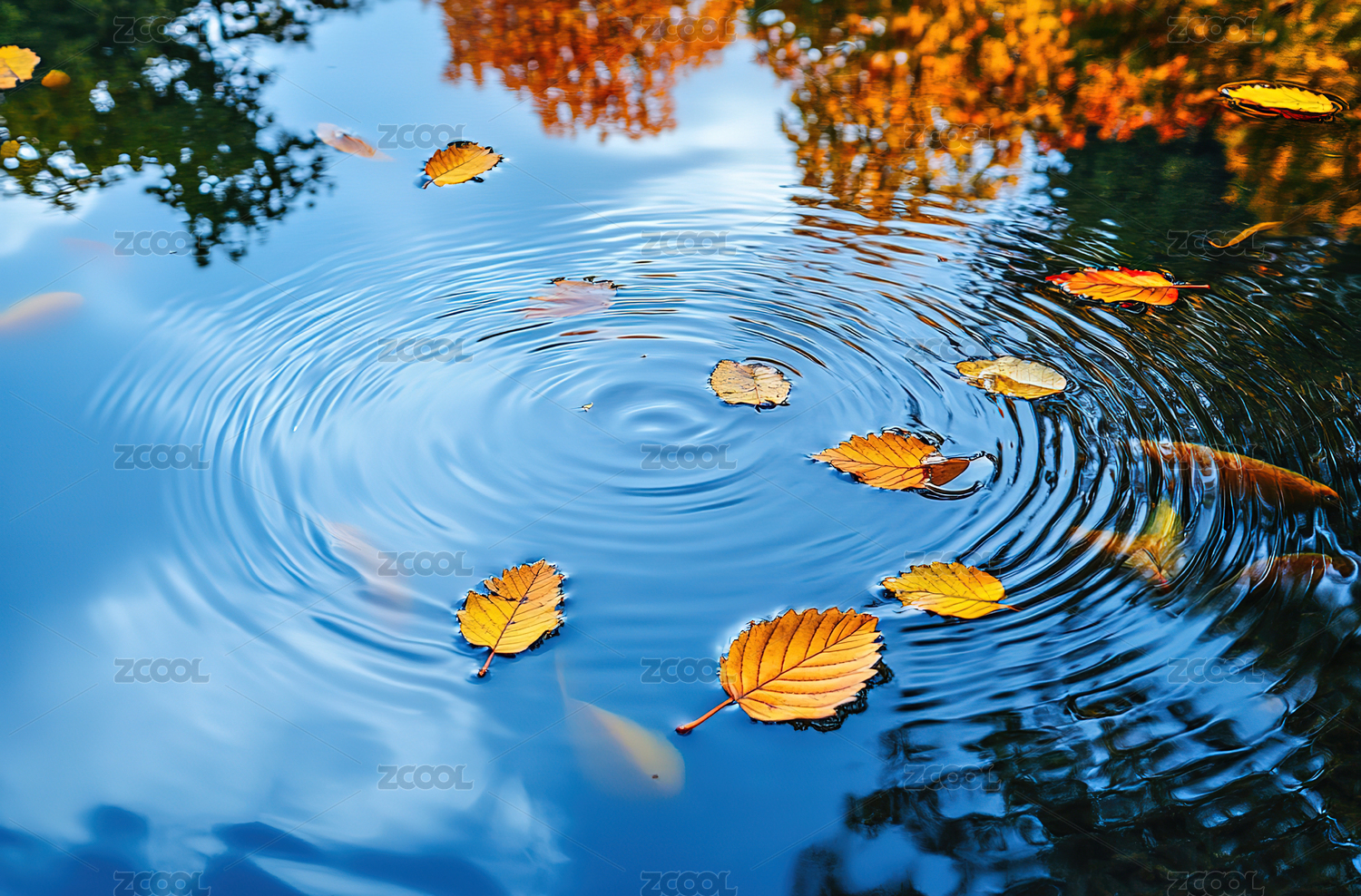 秋叶落在平静的水面上,泛起阵阵涟漪