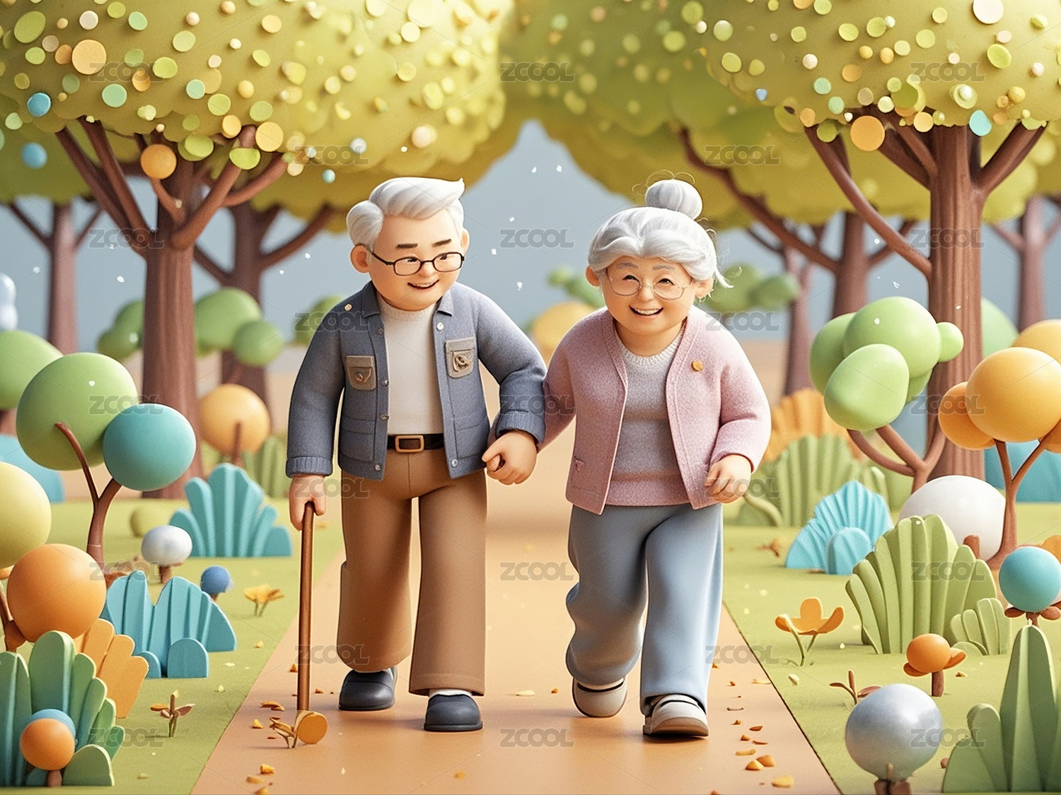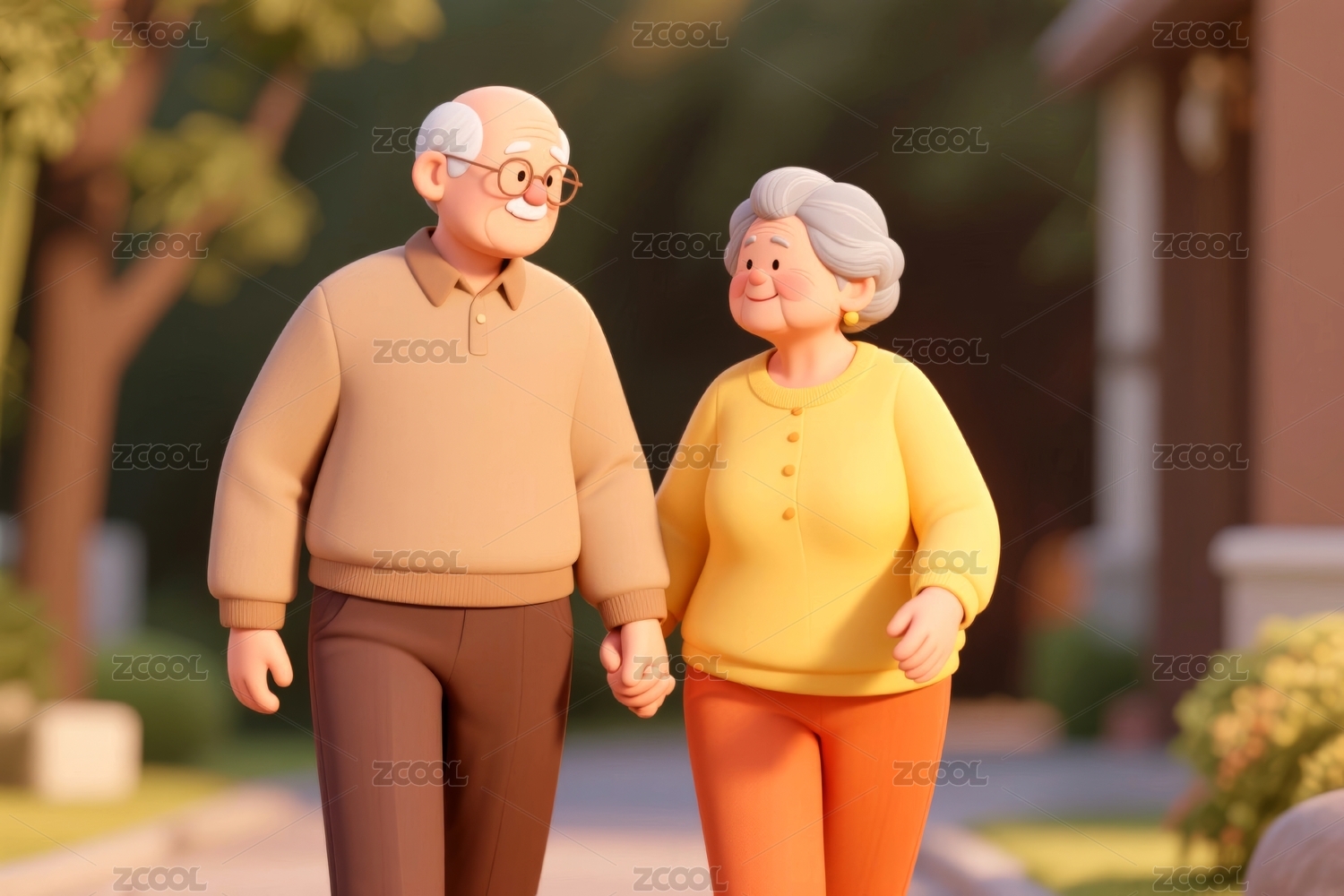 休闲,快乐,健康,户外,生活,老年人,夫妻,散步,手牵手,街道