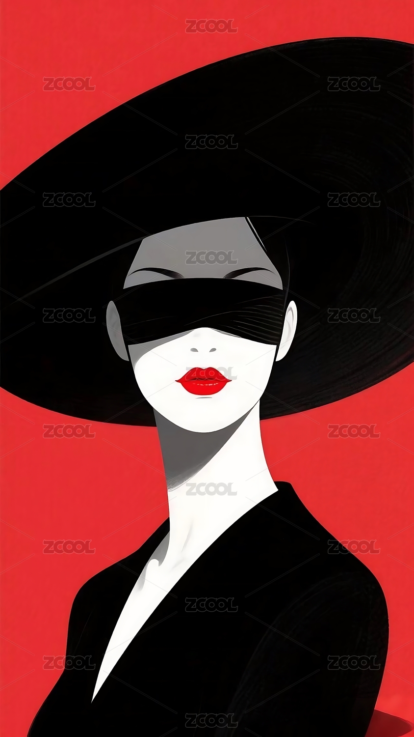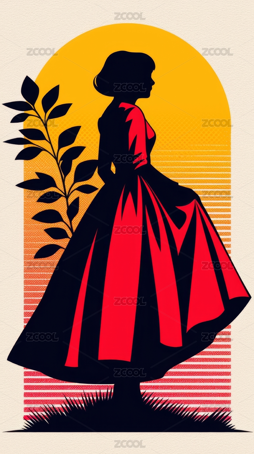 红裙女子剪影复古插画