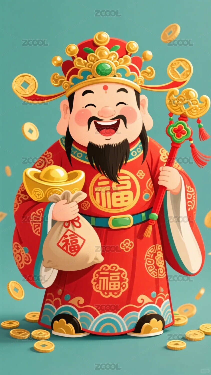 财神,喜庆,卡通,吉祥,可爱,祝福,传统,节日,新年,喜悦
