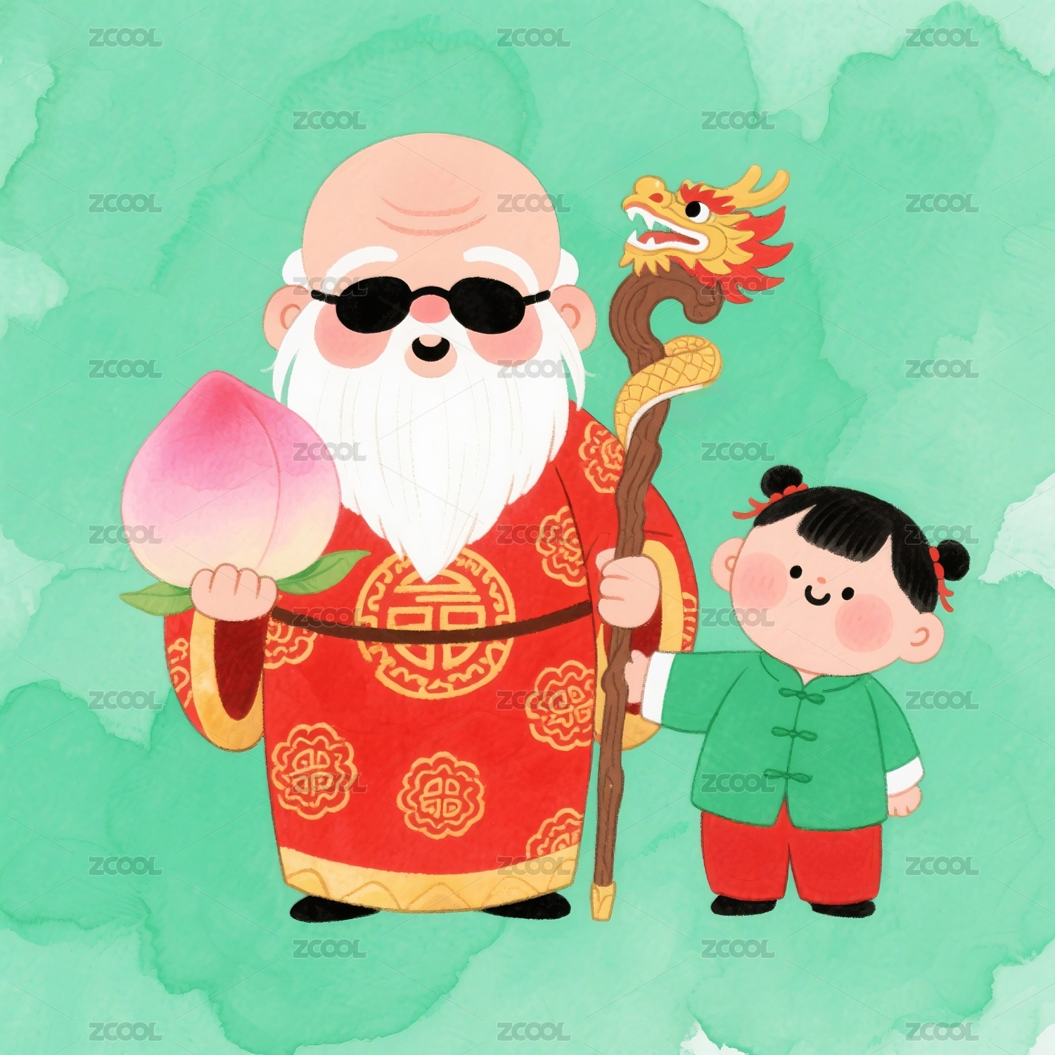 墨镜,红色,喜庆,吉祥,祝福,传统,中国,人物,神仙,寿星