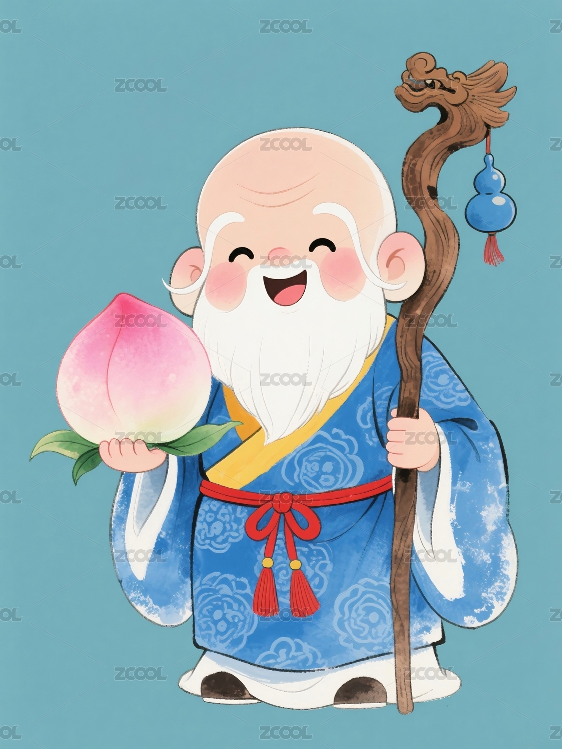 持仙桃拄杖的寿星形象