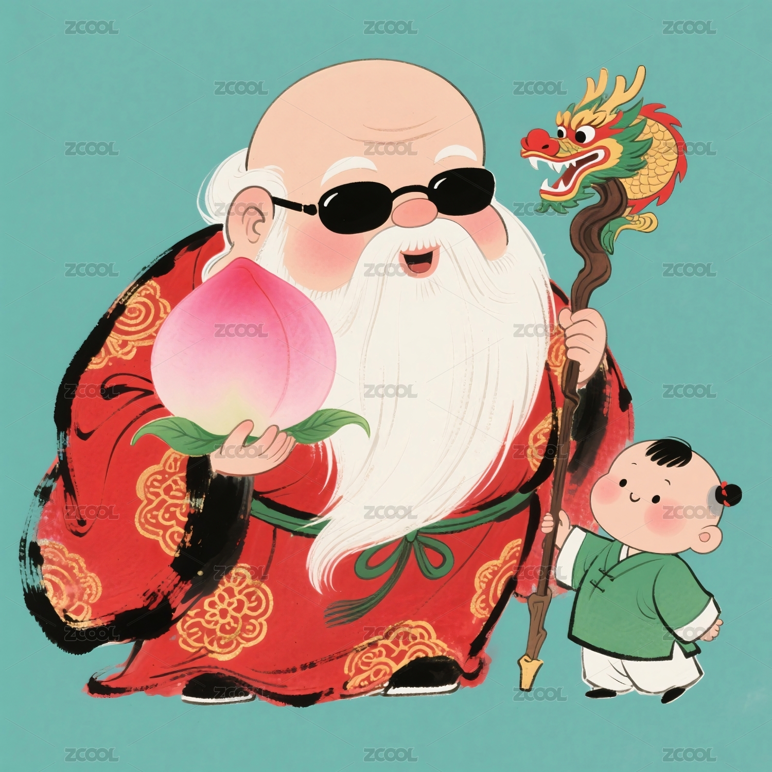 老寿星桃子童子举杖