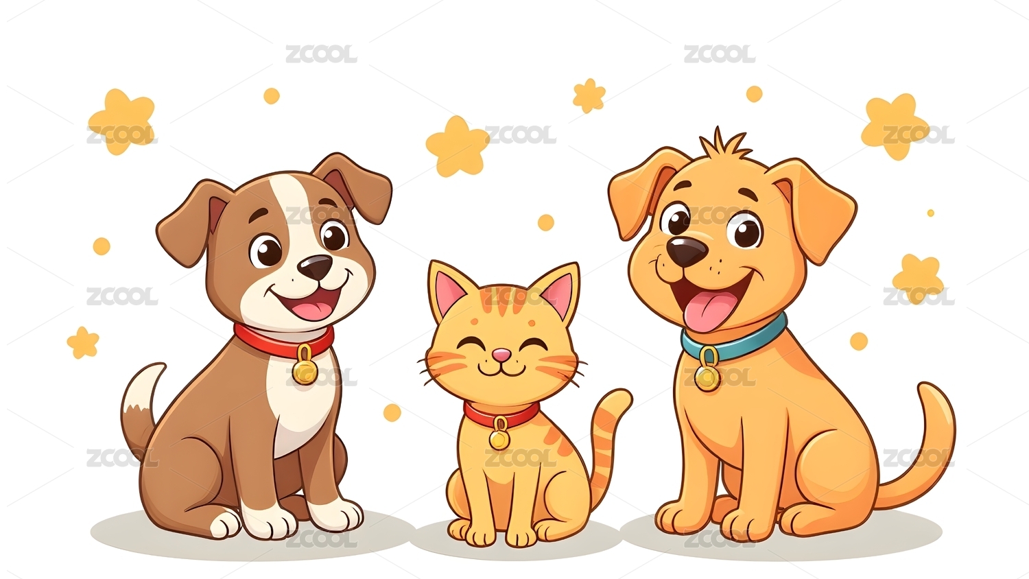卡通动物,小狗,小猫,刺猬,星星,插画,模板,可爱,元素,装饰