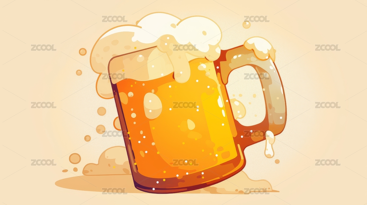 透明背景卡通风格3D啤酒杯,泡沫溢出