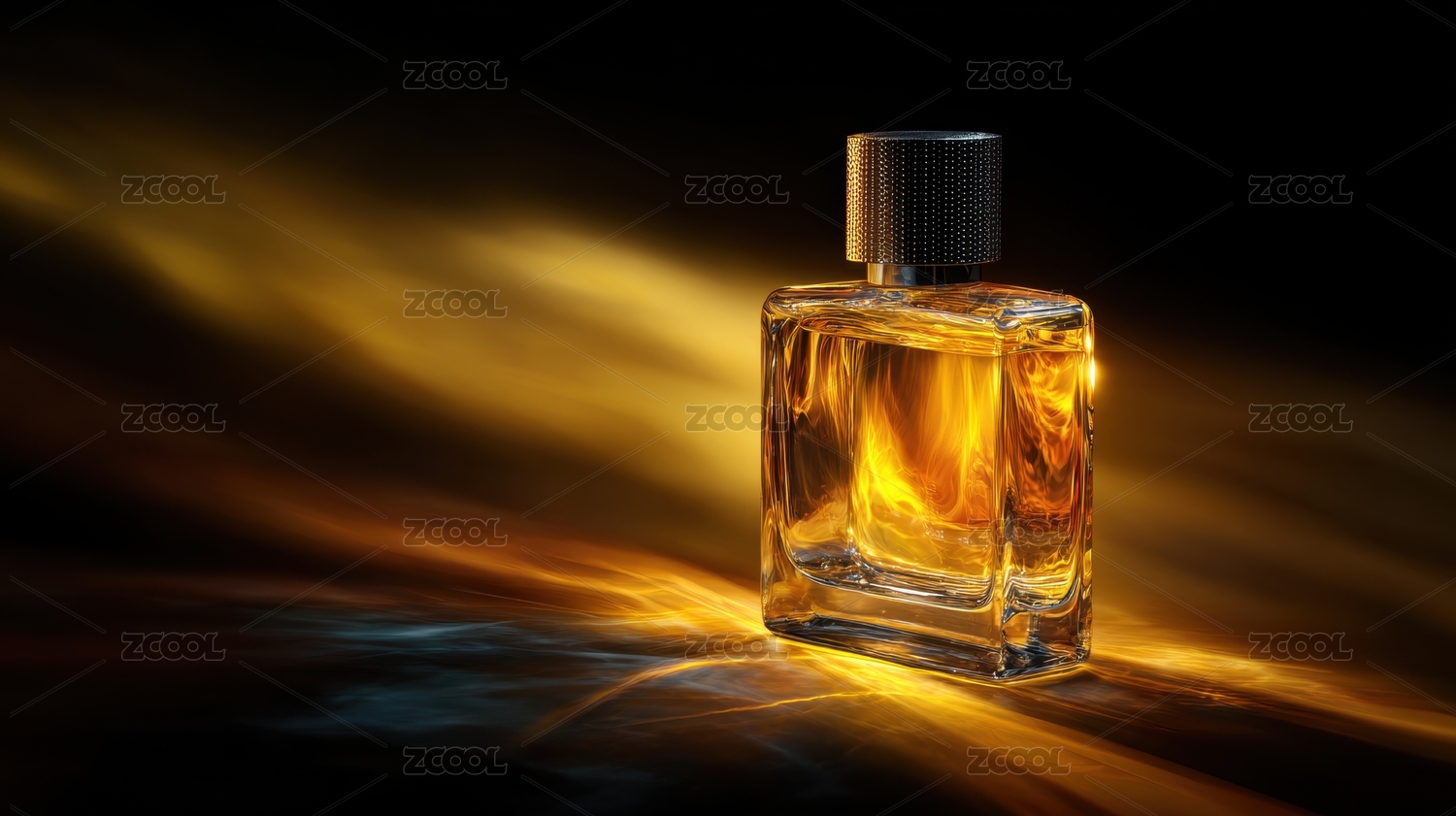 金色光芒中的香水瓶