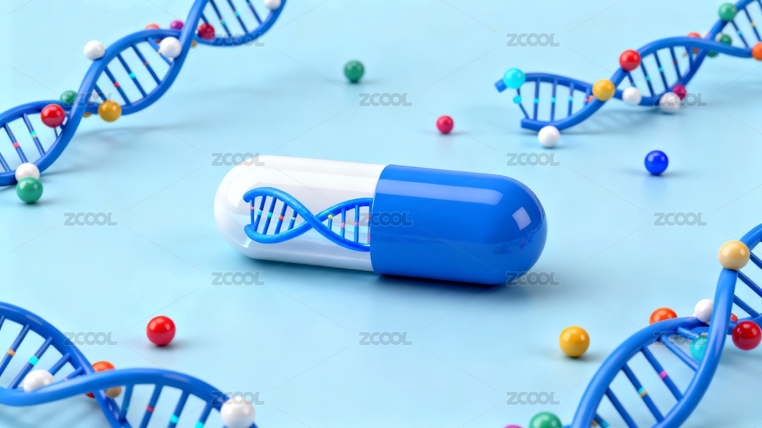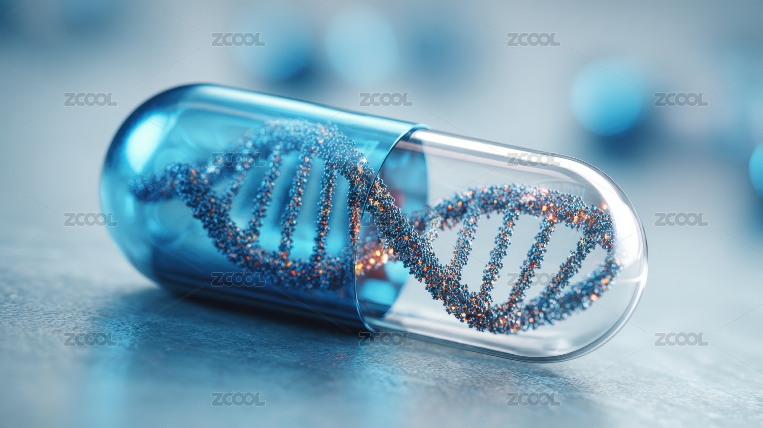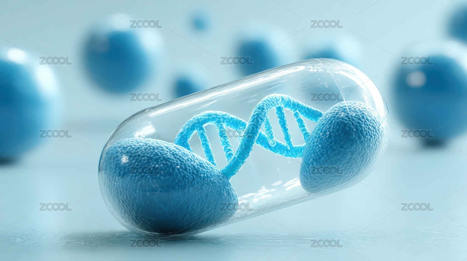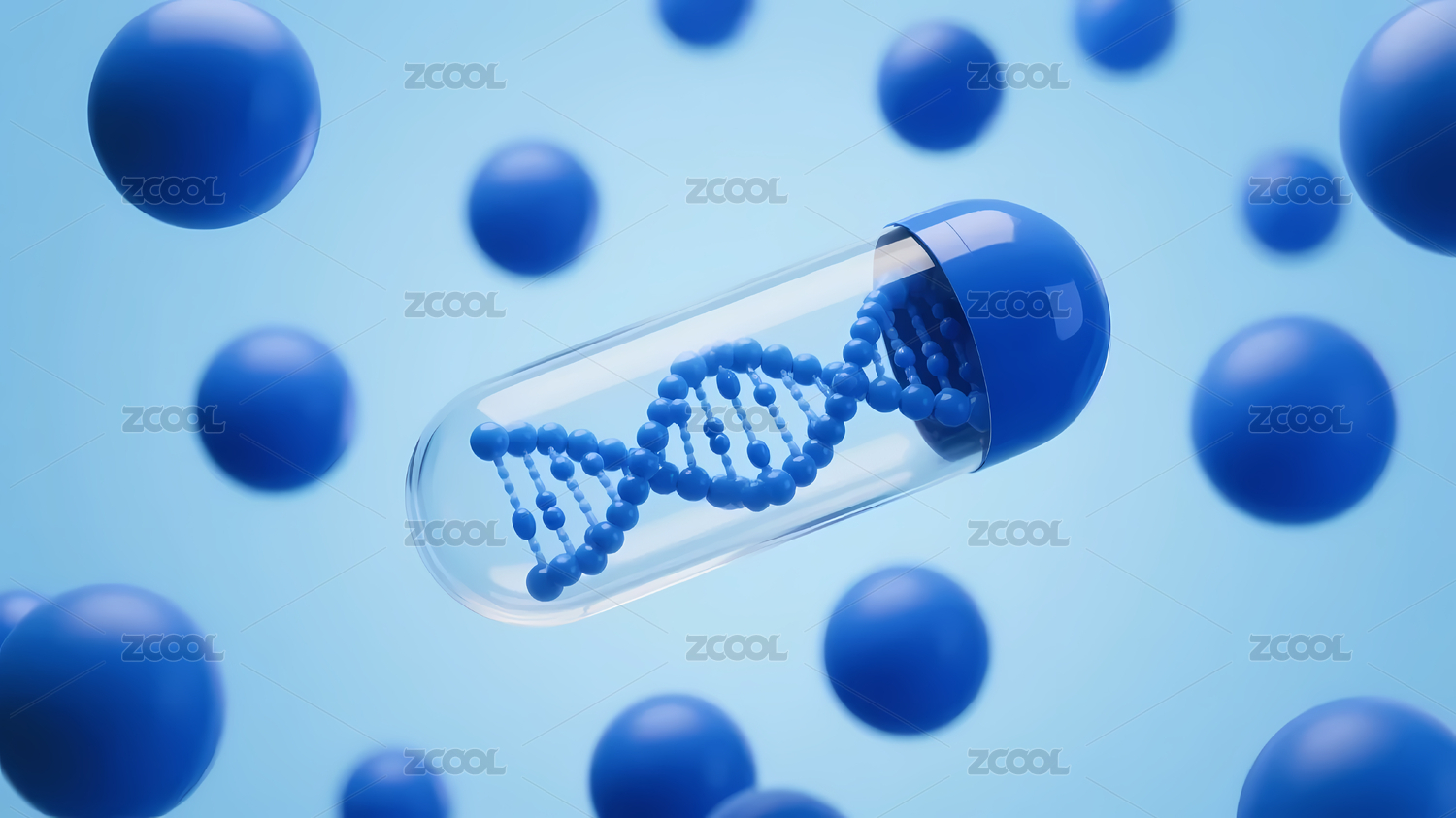 蓝色,背景,透明,科技,胶囊,DNA,结构,双螺旋,小球,环绕