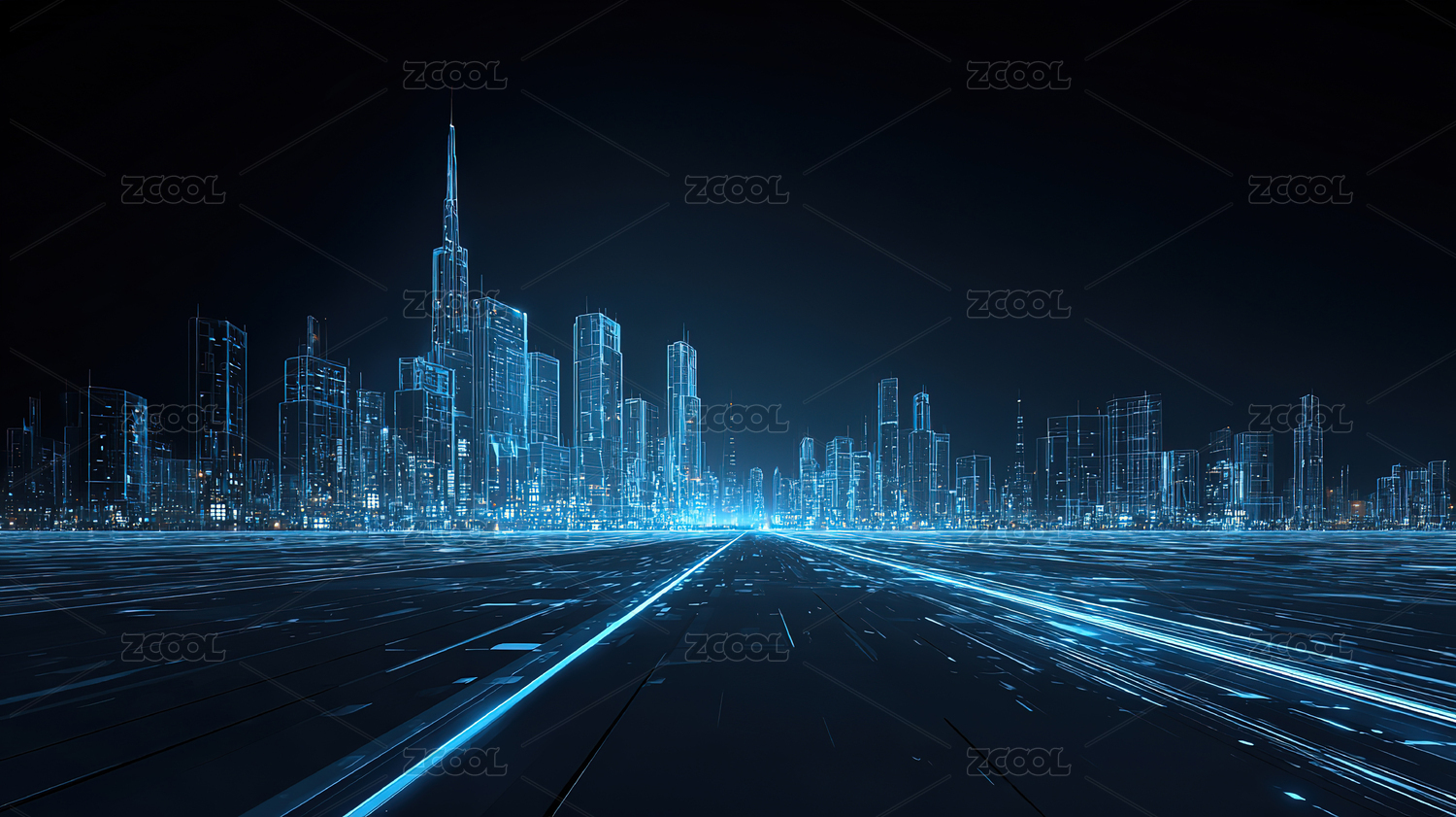 夜晚,广角,全景,高楼,大厦,城市,建筑群,网络,线条,建筑