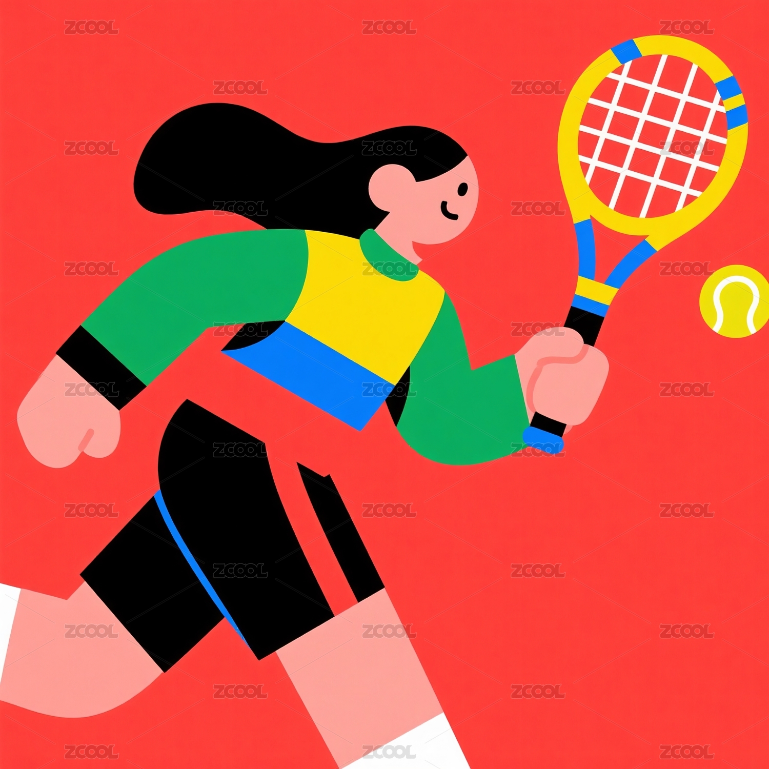 扁平潮流网球运动比赛画面