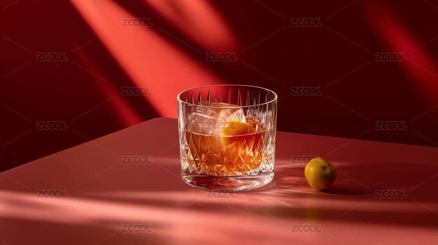 透杯盛酒于暗台的氛围感摆拍