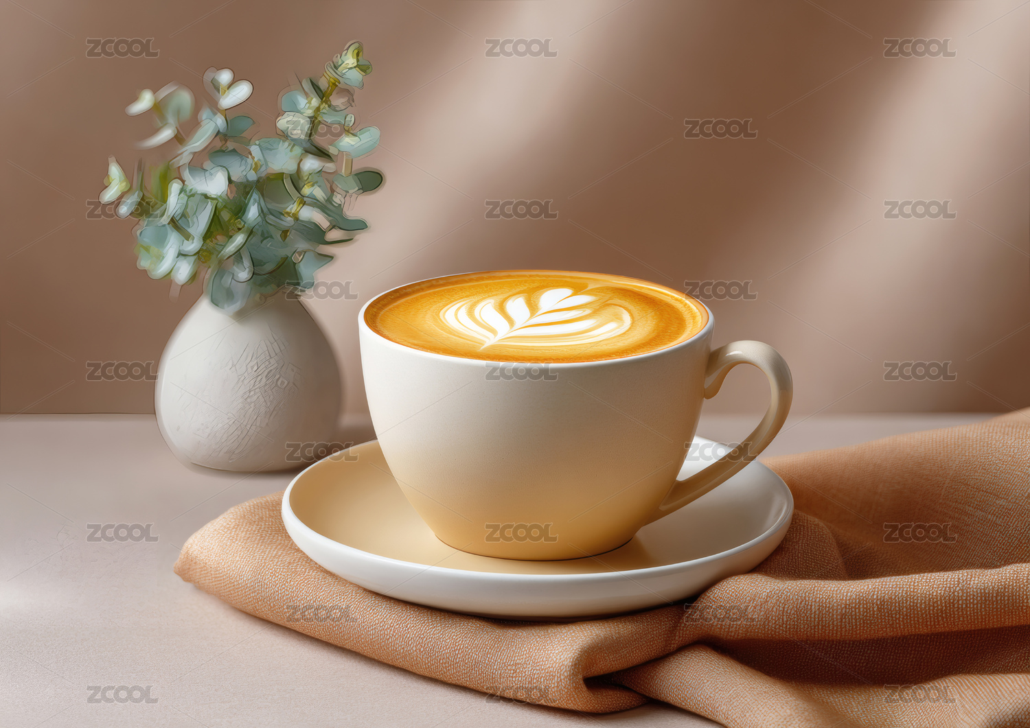 一杯卡布奇诺与小白花