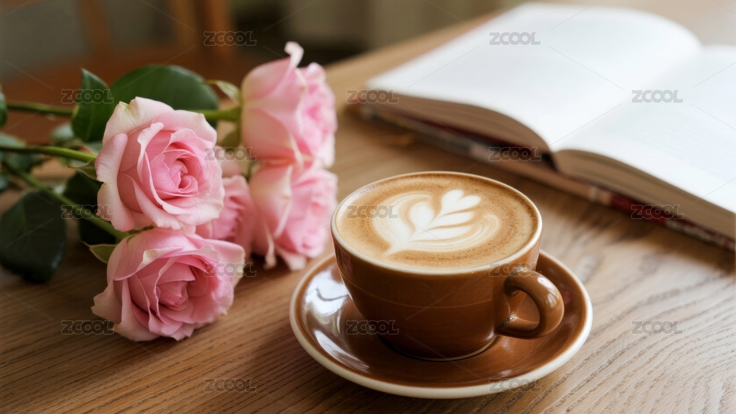 咖啡玫瑰温馨风休闲场景