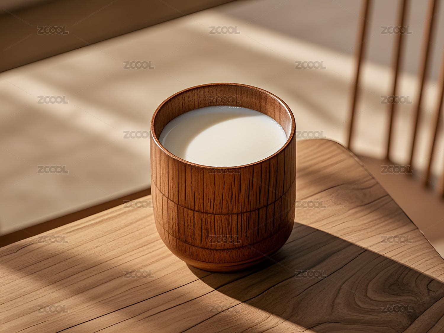 木杯盛牛奶的极简场景