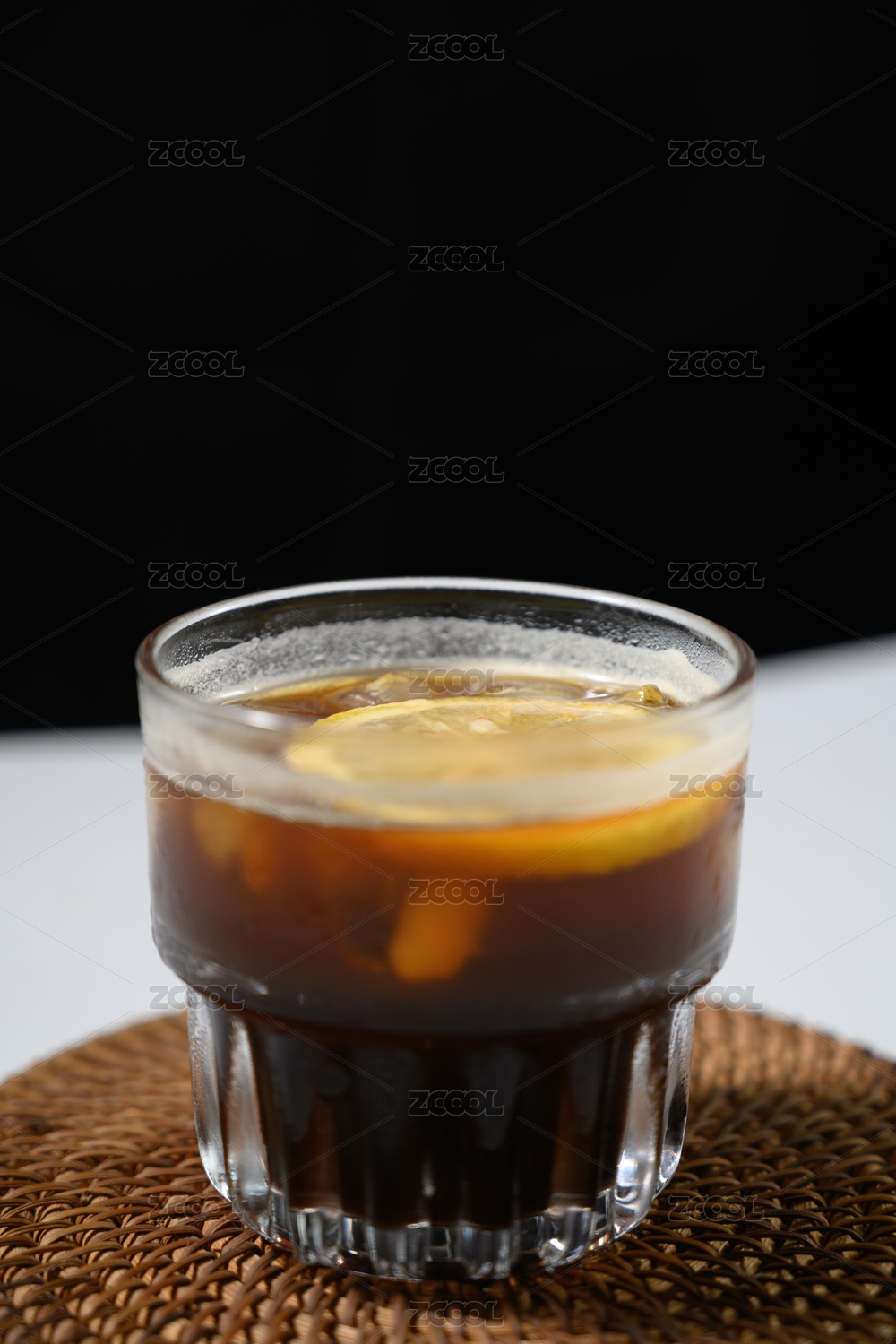 桌面上的杯子里的美味可口柠檬美式咖啡