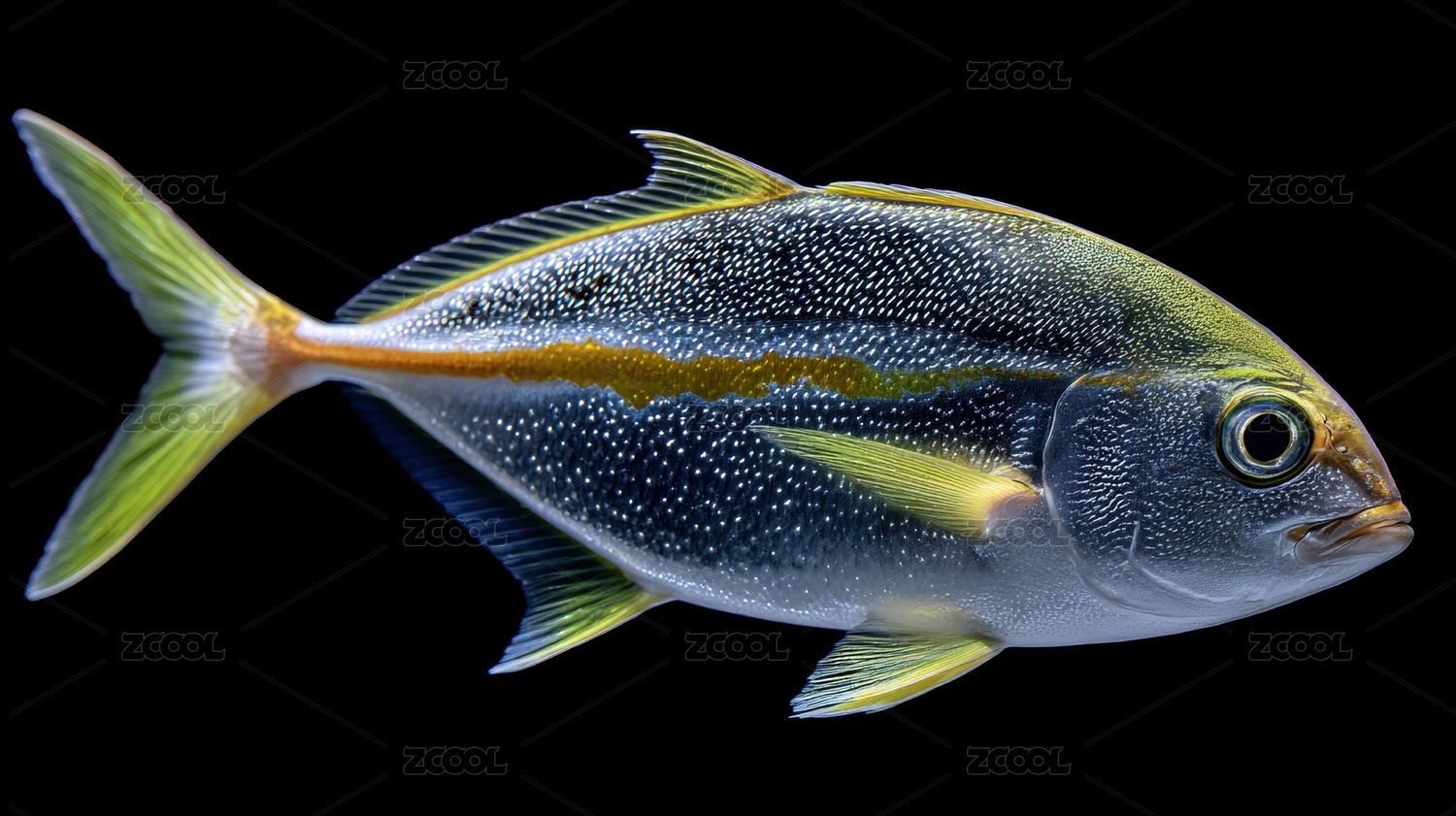 黑色的背景上放着一条黄色的冰鲜深海鱼
