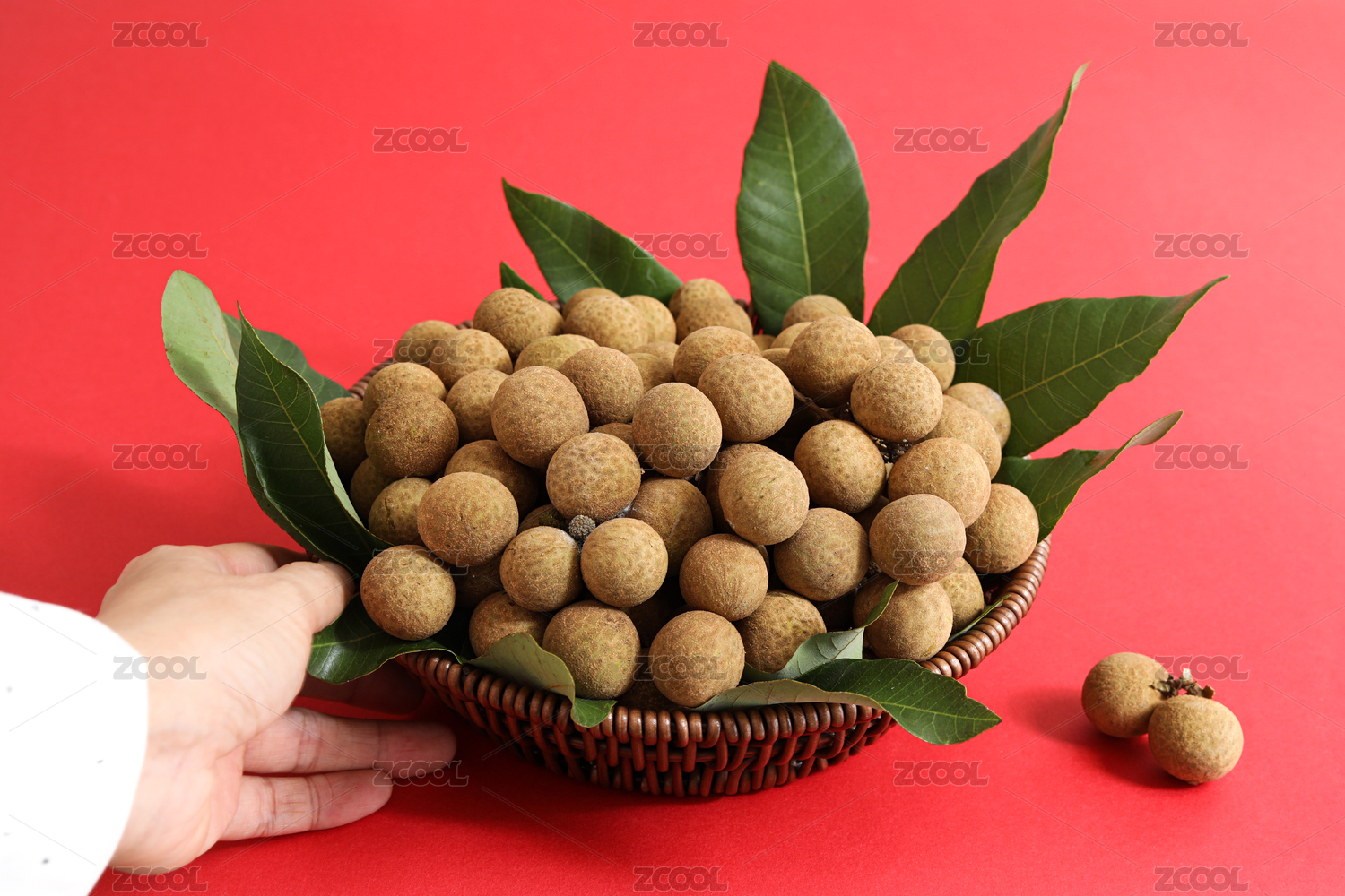 红色桌面上的一篮子夏天岭南新鲜水果龙眼