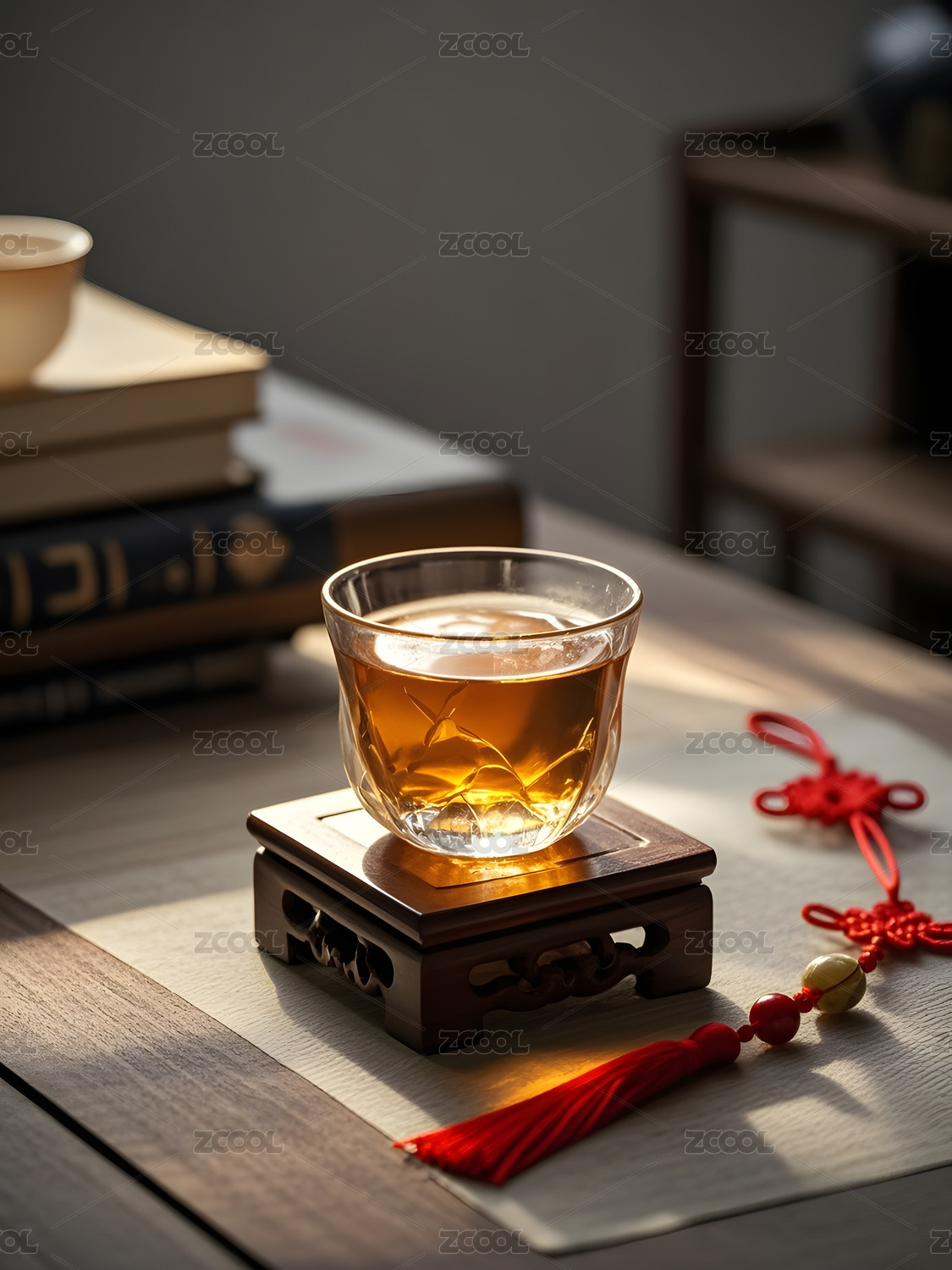 花纹杯配书籍的文艺场景