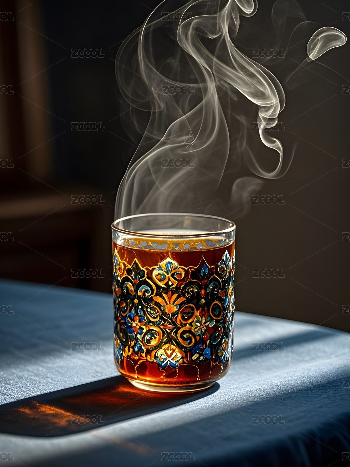 花纹杯盛热茶的温馨场景