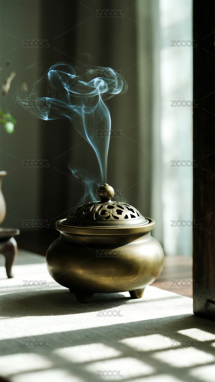 香炉焚香升起的青烟