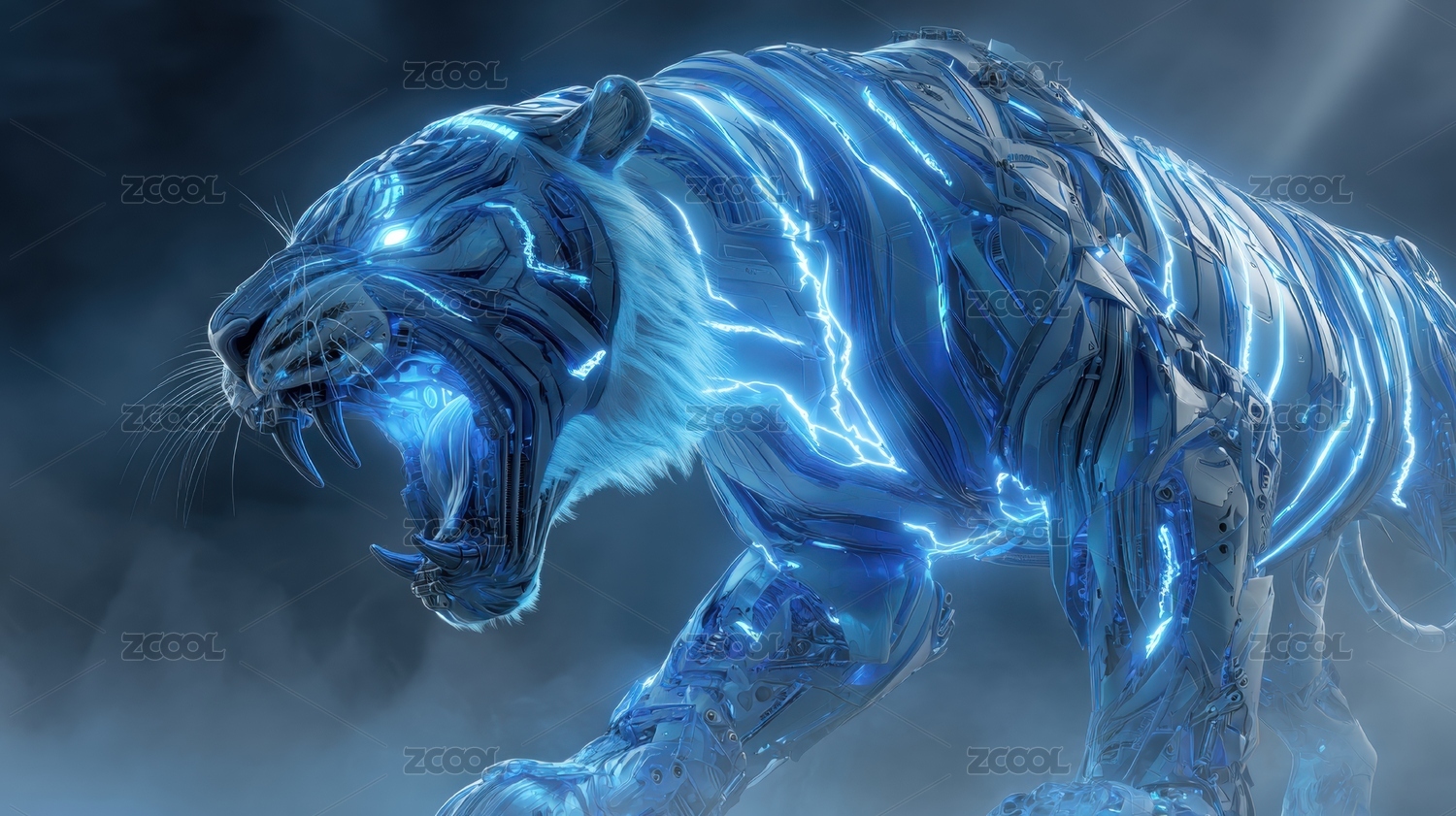 蓝色电光老虎咆哮