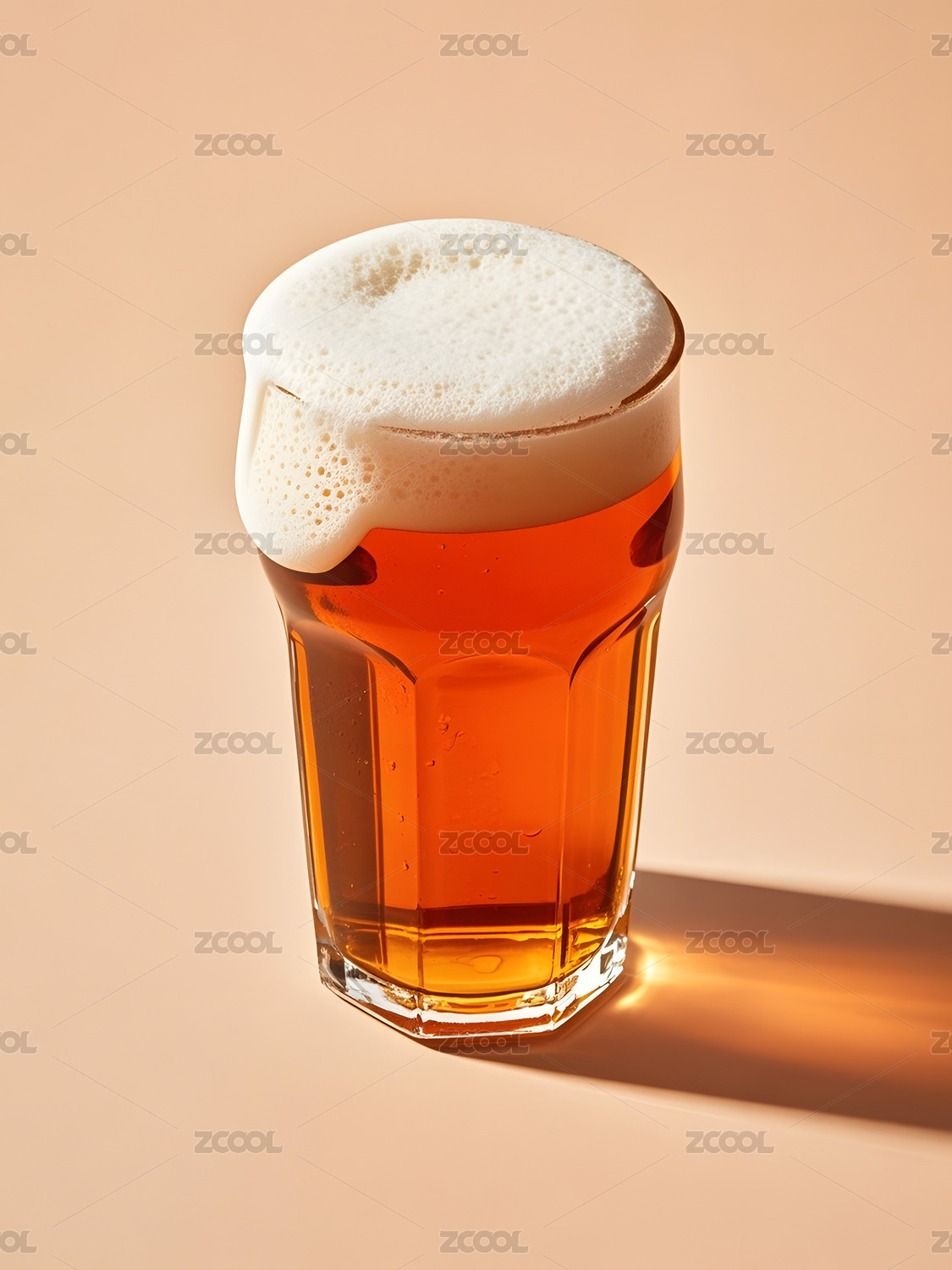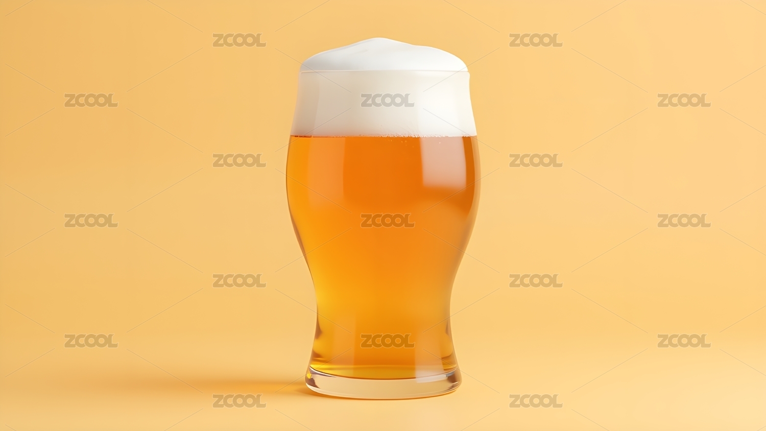 浅色背景前装带泡沫黄色啤酒的玻璃杯