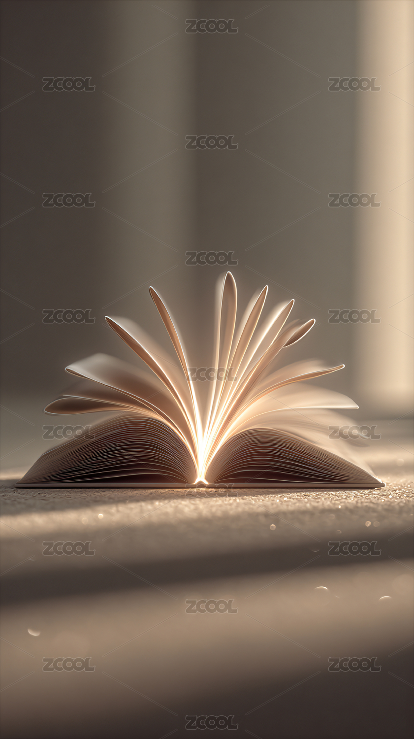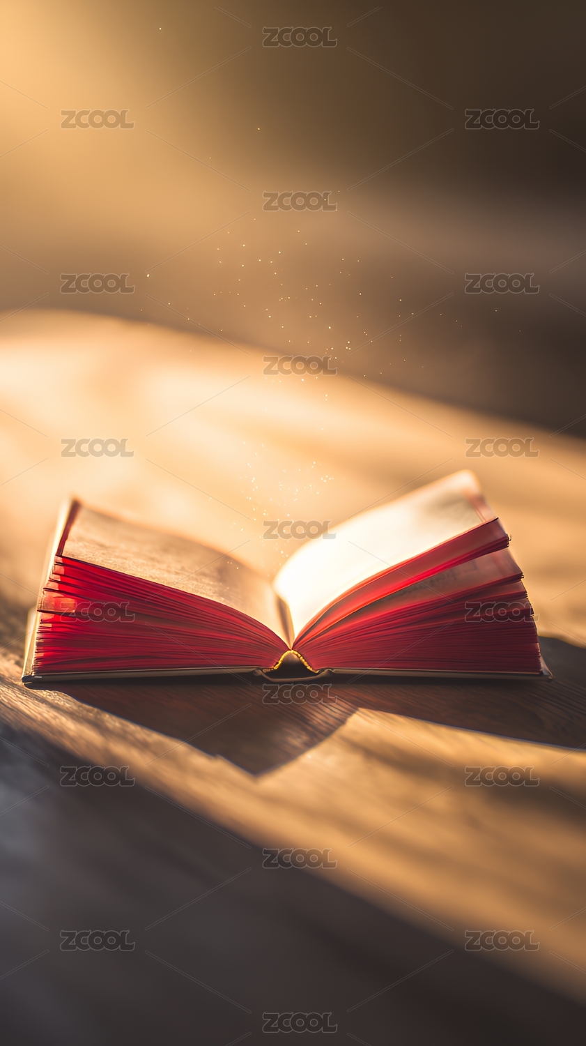 发光翻开的书本特写图