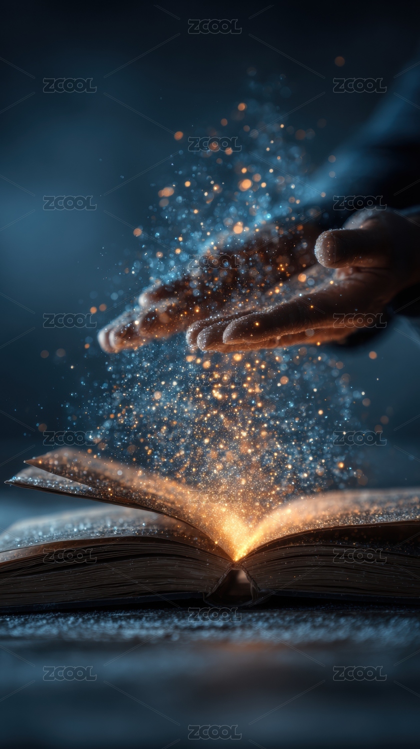魔法书页双手释放光芒