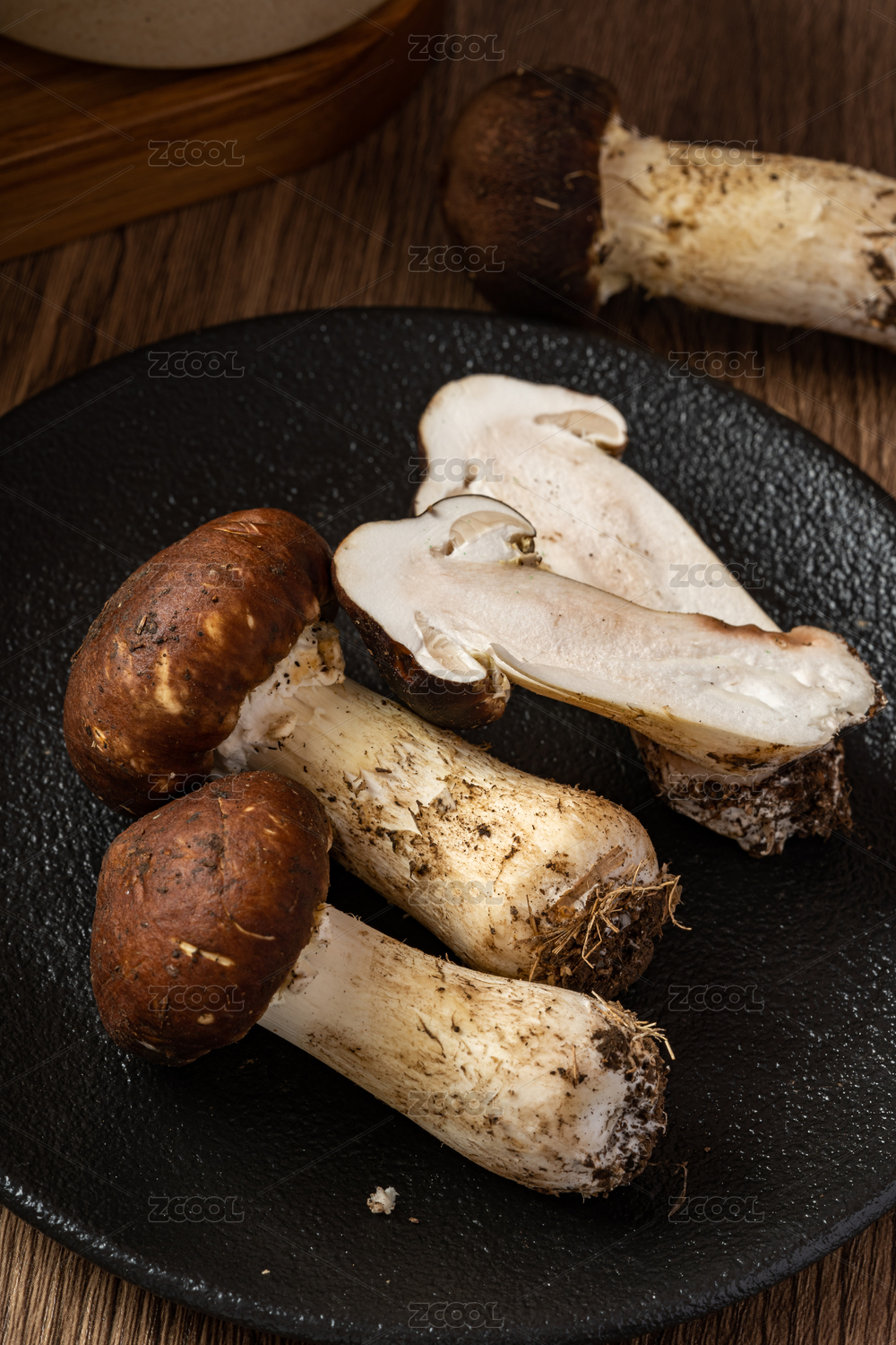 装在木盘中的巴西菇
